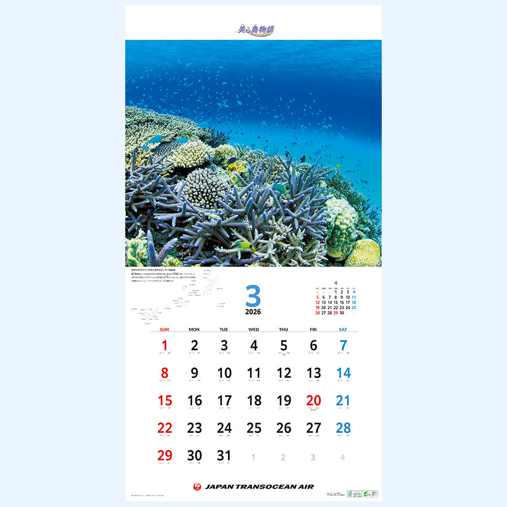 - 【JTAカレンダー 美ら島物語2026】壁掛けタイプ