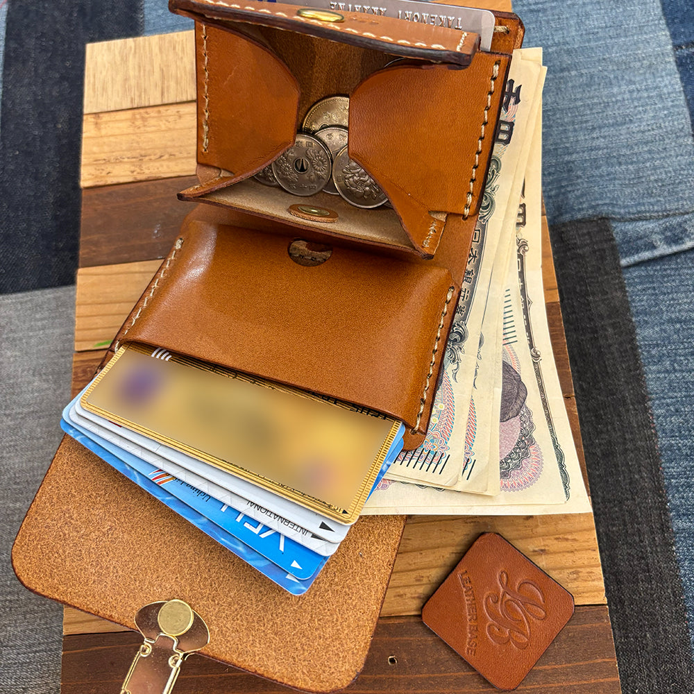 ◎栃木レザー(プルアップオイルレザー)を使用したハンディサイズのオリジナルウォレット。