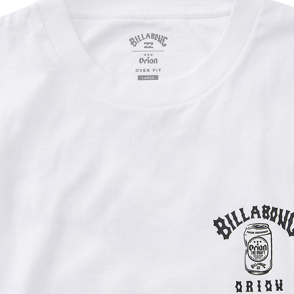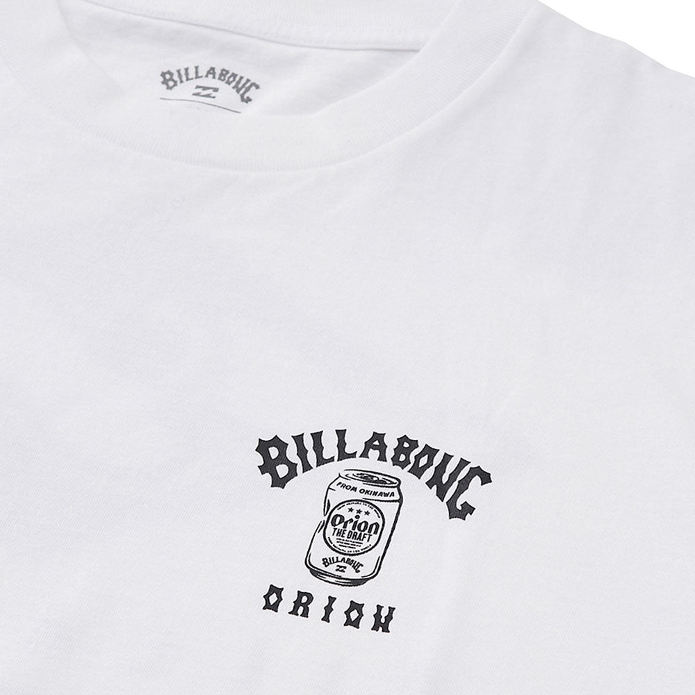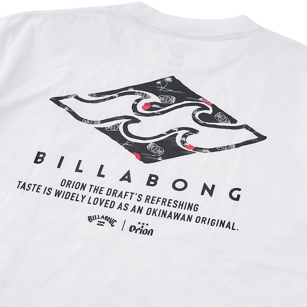 バックスタイルのORION BEER を散りばめた総柄パターンと、ウェーブロゴが目を惹くデザイン。左胸には、BILLABONG のアーチロゴと、ORION BEERの缶のグラフィックをレイアウト。