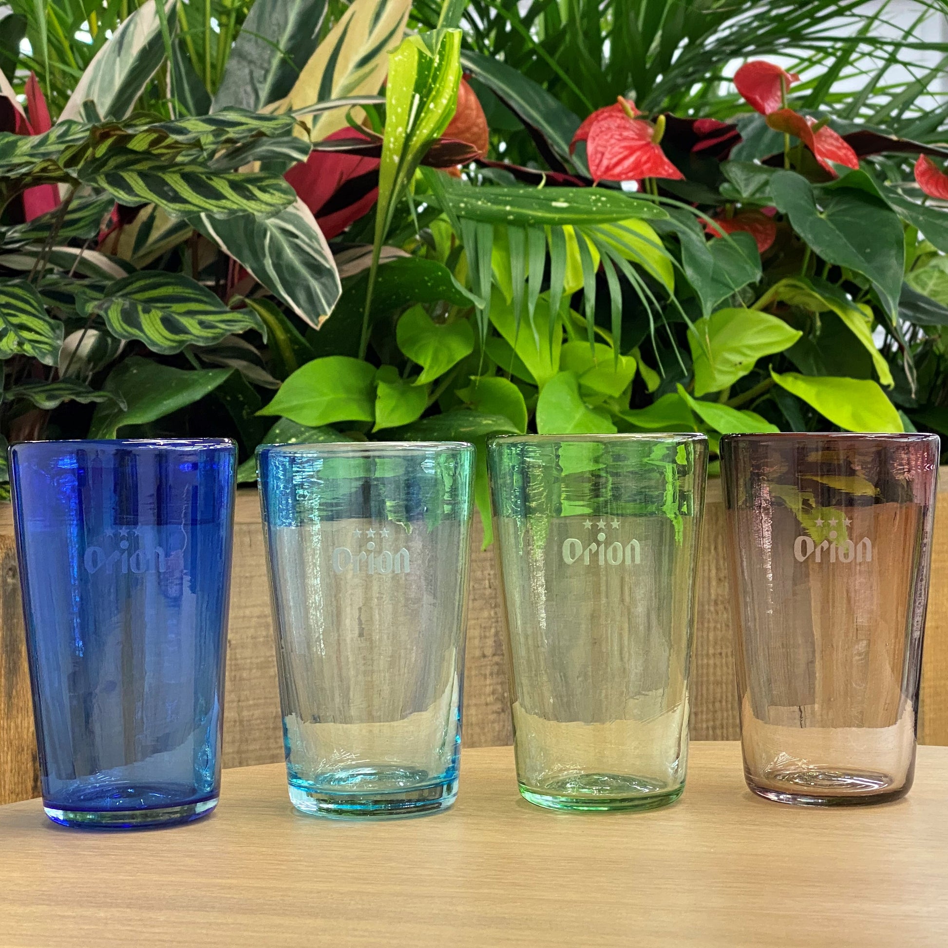 今回の新形状のビアタンブラーは容量390mlで缶ビール1本注ぐのにちょうどよいサイズ。琉球ガラスらしい涼やかさを楽しめる、4種のカラーバリエーションをご用意。オリオンビールはもちろん泡盛など様々なお酒を美味しくかつお洒落に楽しめるアイテムです。