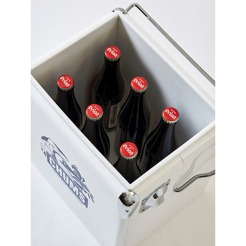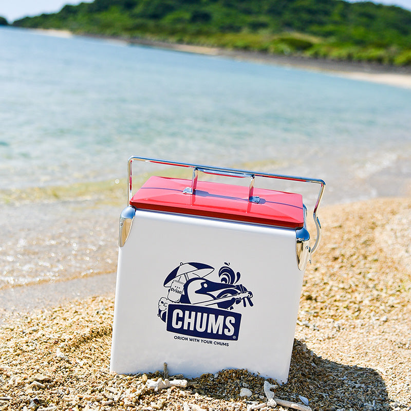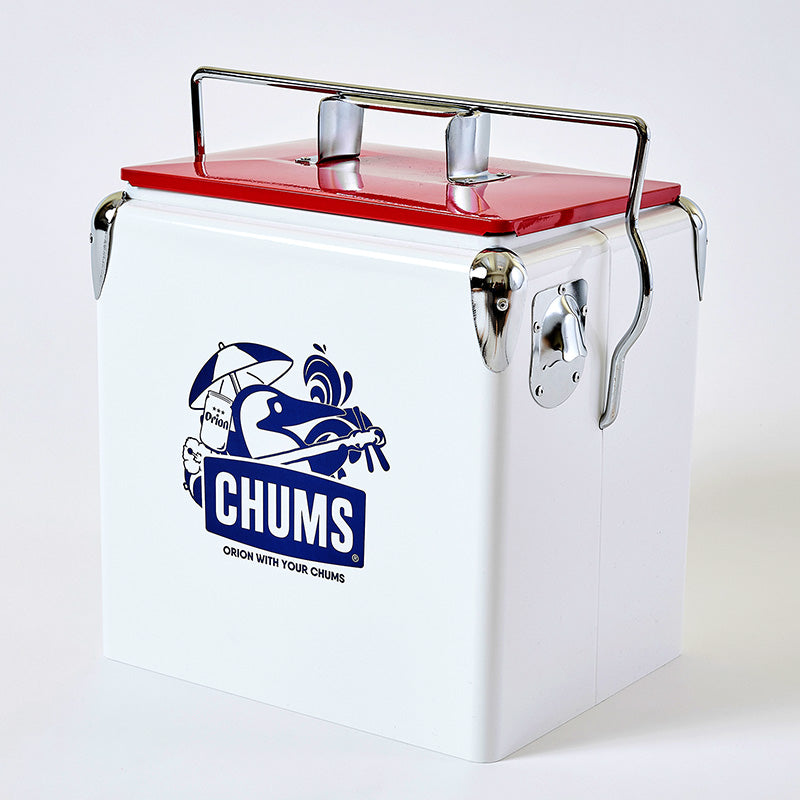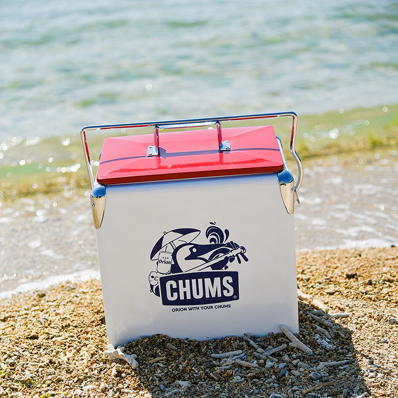 こちらのアイテムは12Lの小型ハードクーラーボックス。使い込んでいくうちに味わいを増していくスチール製で、フロントに大きく配したORION×CHUMSコラボのアイコンがアクセント。小型で携行しやすく、デイキャンプやソロキャンプにおすすめです。