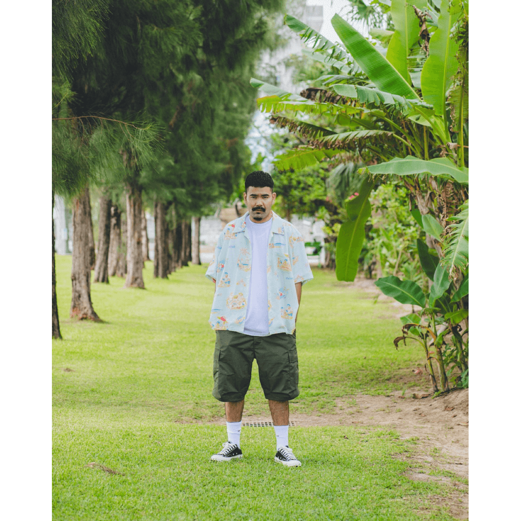今回のコラボでは、「沖縄の夏をいいあんべぇに過ごす」というテーマで、沖縄コラボならではのアロハシャツを制作しました。