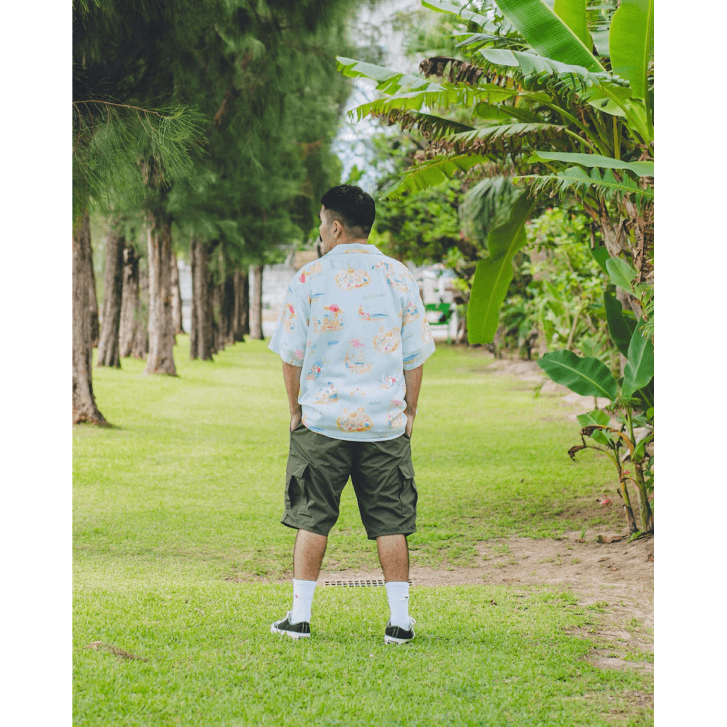 沖縄のchill spotとして人気の西海岸のビーチをイメージした総柄シャツ。