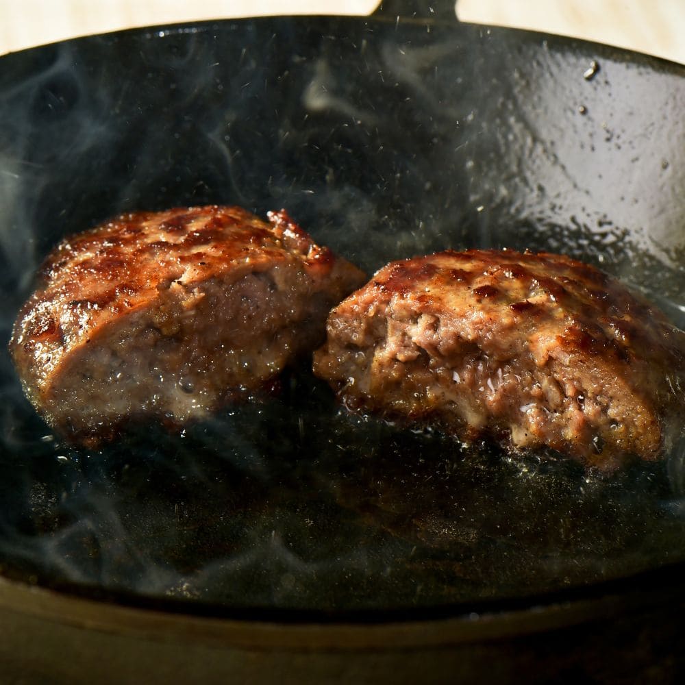 充分に熱したフライパンに、凹ませた面を上にしてハンバーグをのせ、中火で3分焼きます。