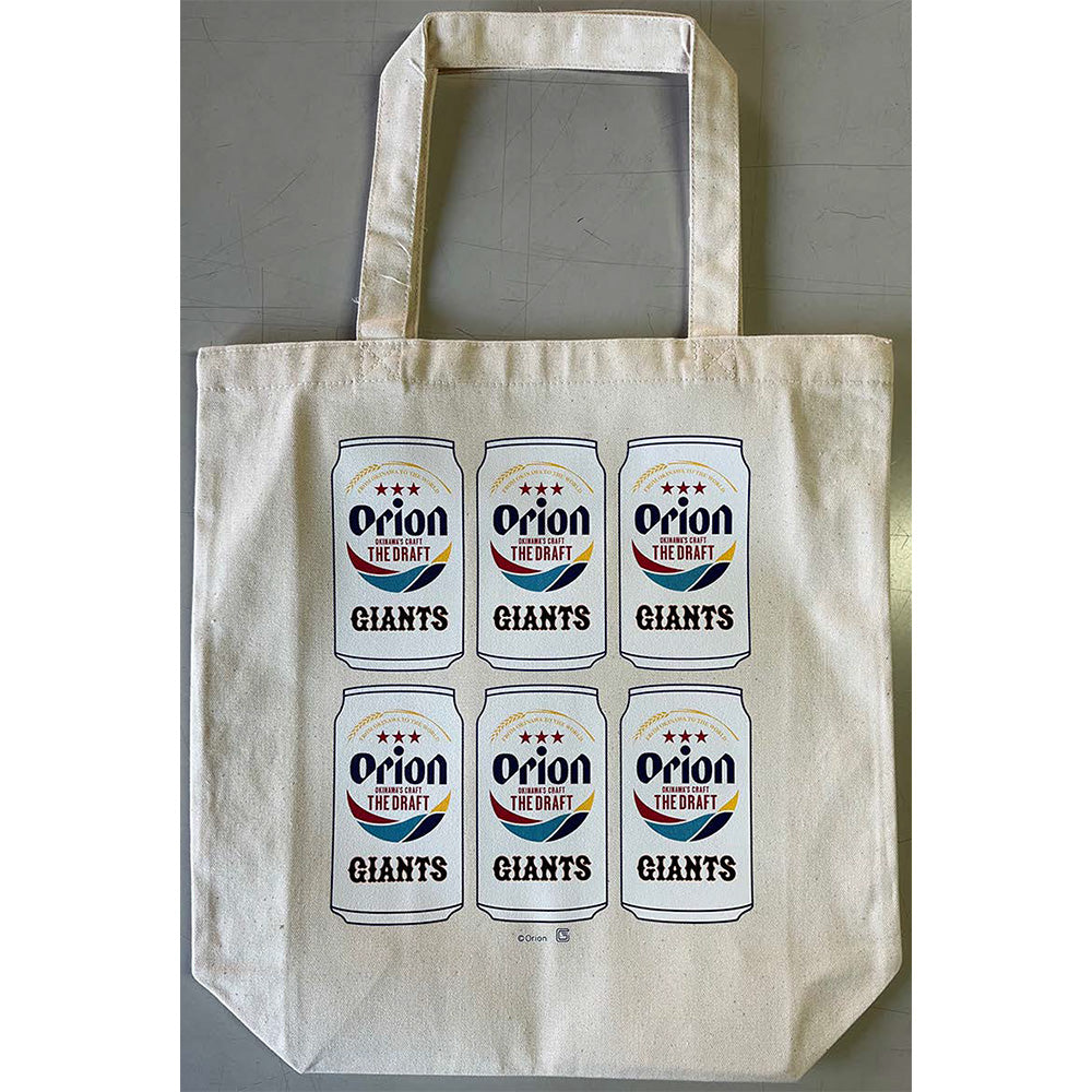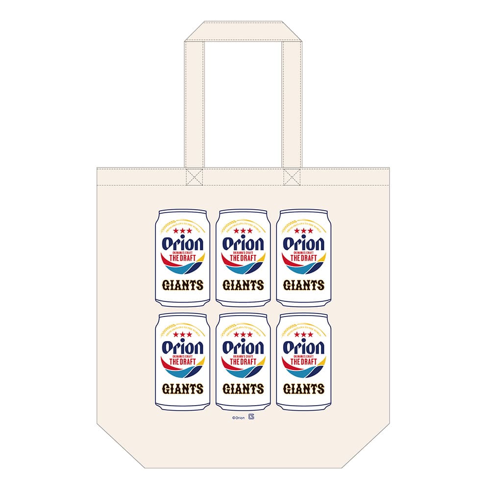 オリオン ザ・ドラフトの缶ビールに球団ロゴを掛け合わせた可愛らしいデザインのトートバッグ。