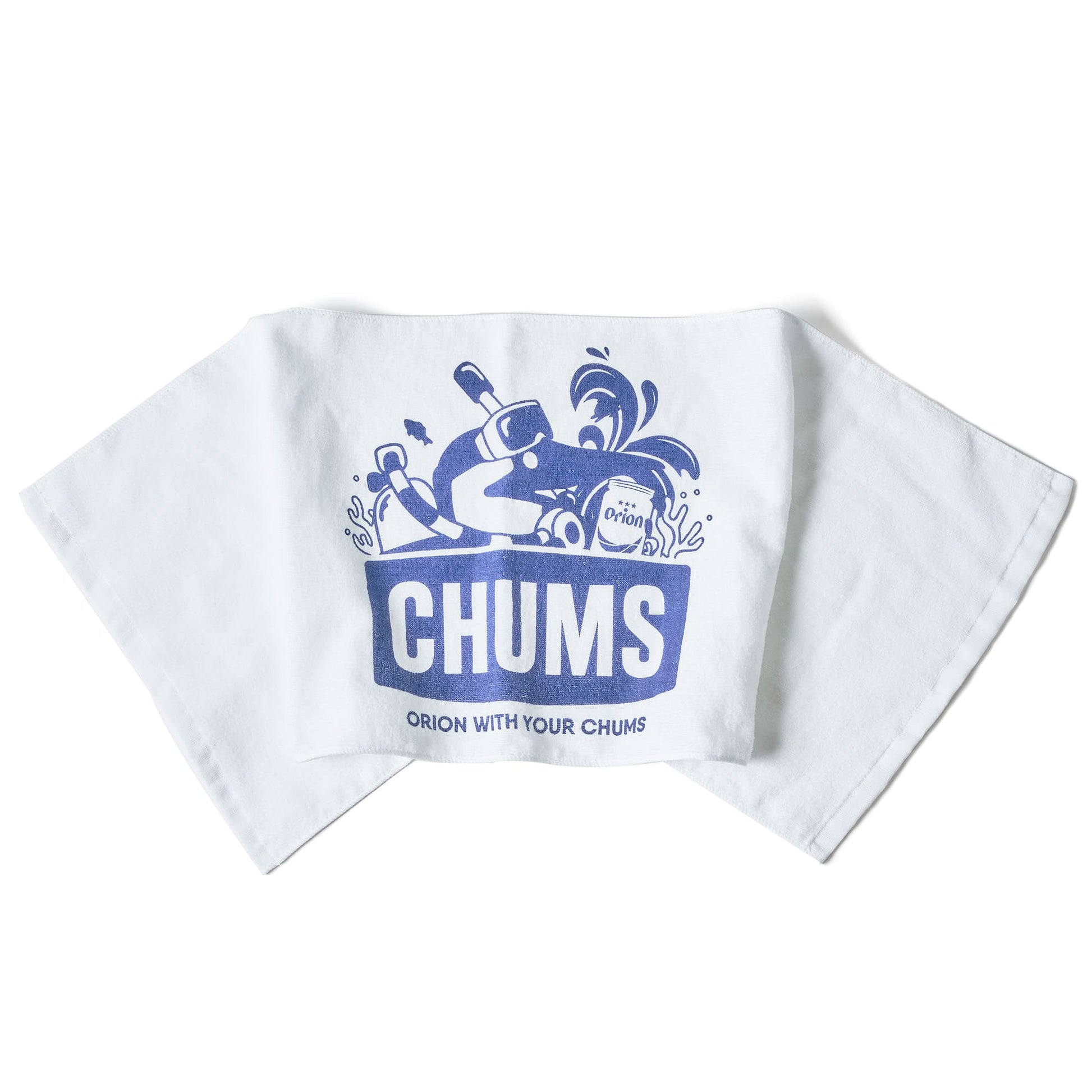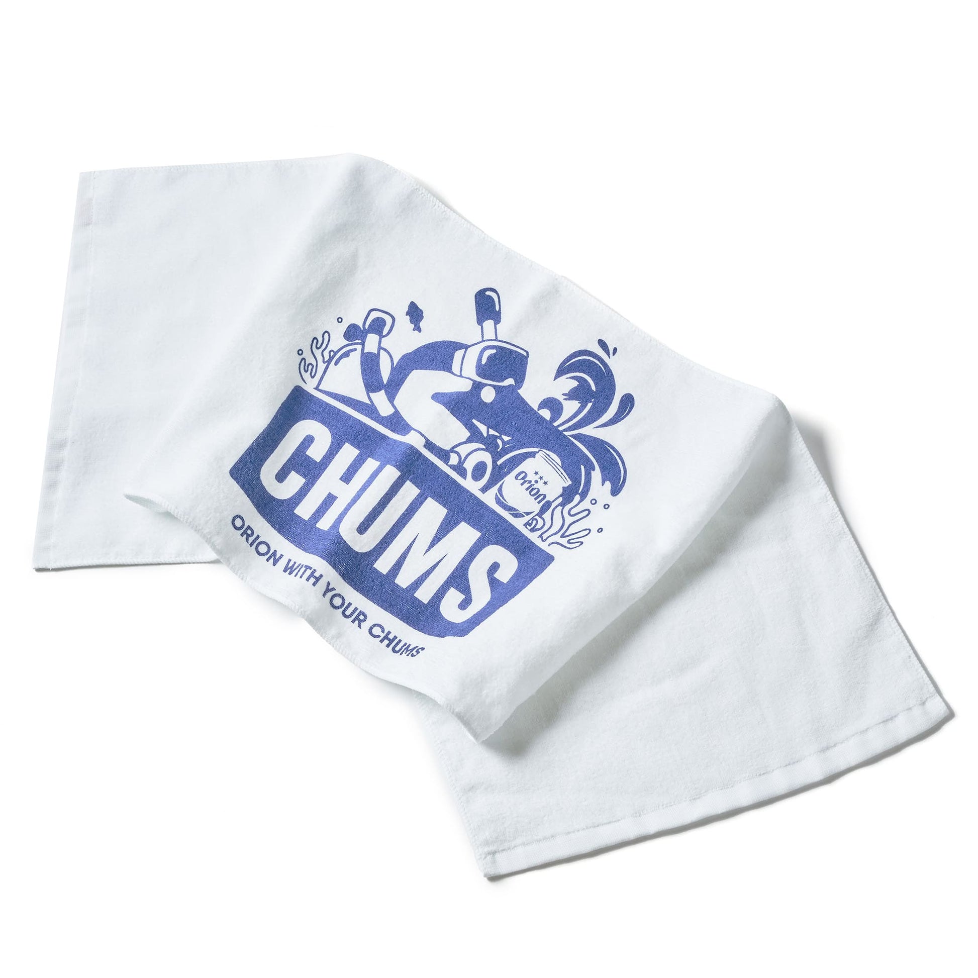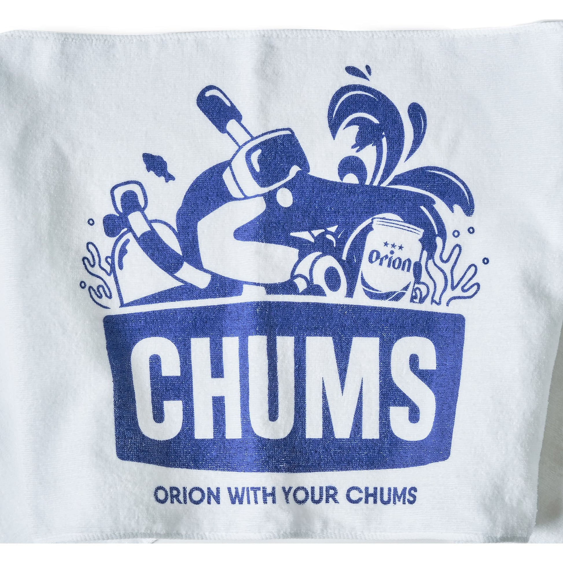 こちらはアウトドアや日常使いにも役立つ定番のフェイスタオル。デザインには、CHUMSのマスコットキャラクター『ブービーバード』とオリオンビールのコラボアイコンを大きくプリントした可愛さと注目度抜群のデザイン。