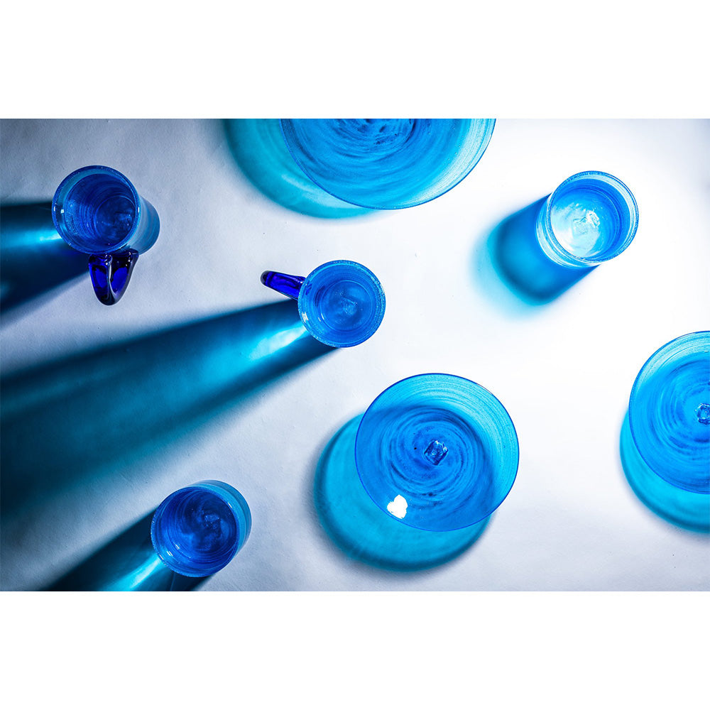 工房で造られる琉球ガラスは手吹きガラスで一つひとつ、職人が作る手仕事で生み出されています。そのため、サイズ・重量・模様に個体差があり、筋・気泡や色味の違いが生じます。