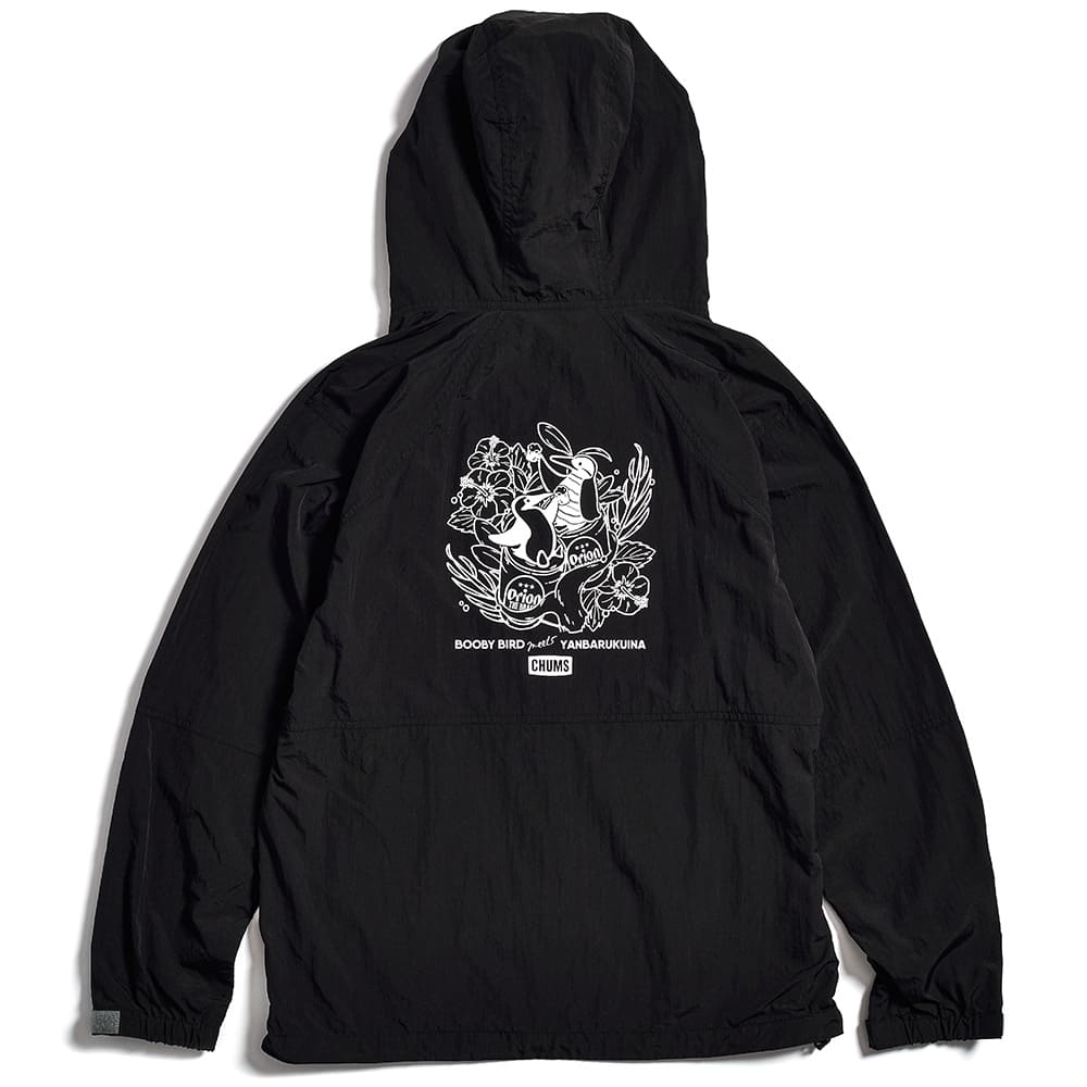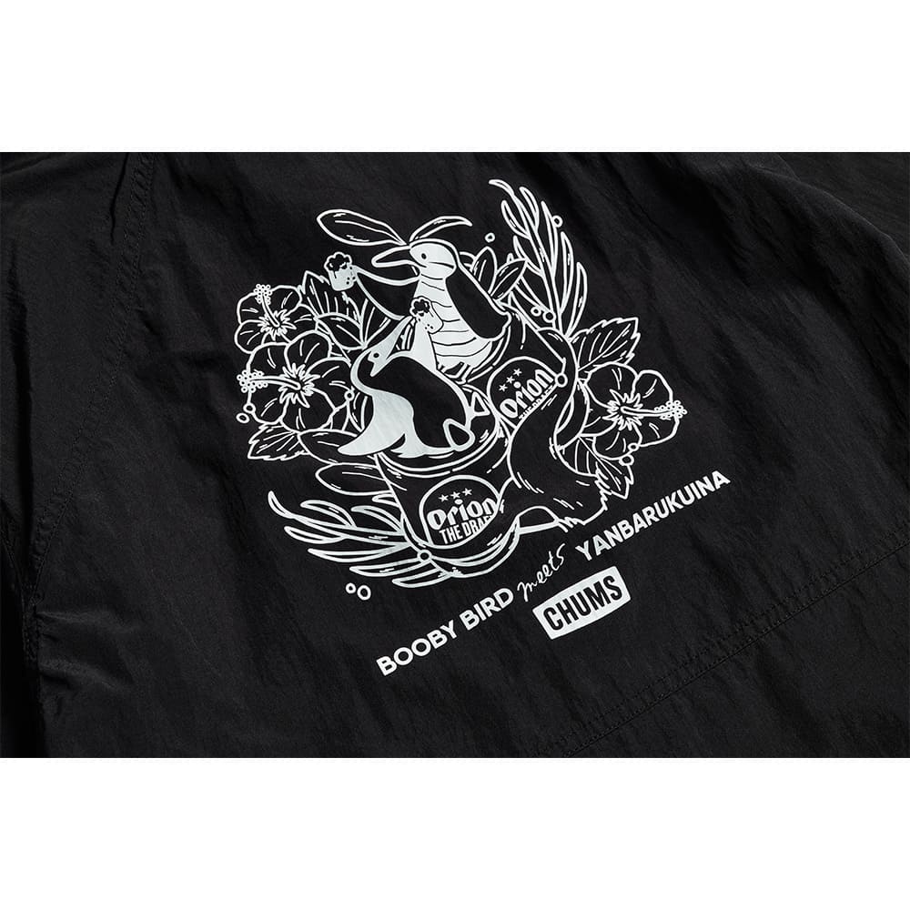 フロントデザインは、ORION×CHUMSのコラボを象徴する2社のブランドロゴを配置、バックデザインはCHUMSのマスコット「ブービーバード」と、沖縄本島北部のやんばるエリアにのみ生息する野鳥「ヤンバルクイナ」が、ガジュマルの木の上でオリオンビールを楽しむ仲睦まじい姿をデザインしています。