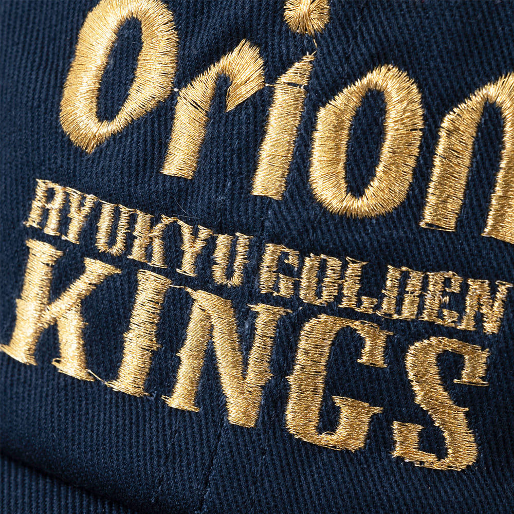 キャップ正面にKINGS×ORIONのコラボロゴがゴールドで刺繍されたスタイリッシュなキャップ。背面のアジャスターでサイズの調整が可能。ユニセックスで使用でき、アクティブなシーンからタウンユースまで幅広く対応。