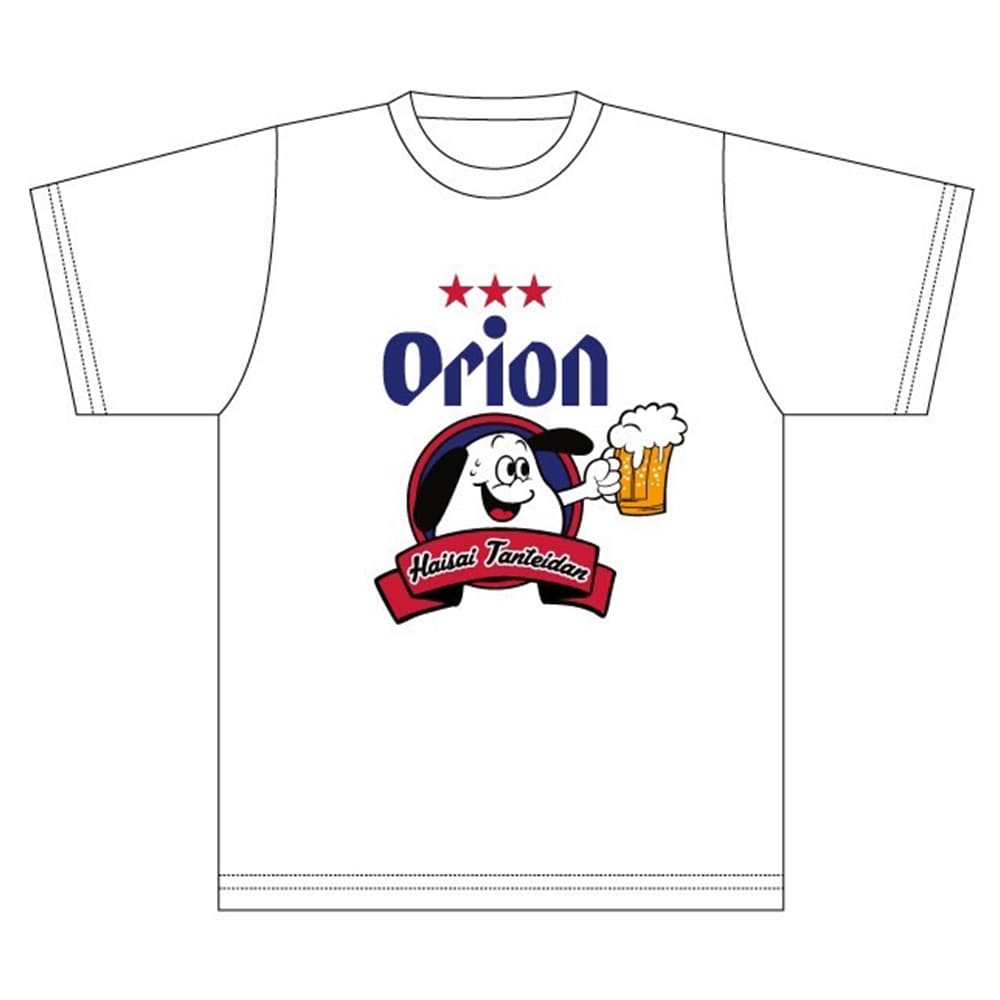 こちらの「チャッピー乾杯Tシャツ」は、ハイサイ探偵団のキャラクター「チャッピー」がオリオンビールで乾杯を捧げるデザイン。ハイサイ探偵団×オリオンビールのコラボ感満載で、思わずビールで乾杯したくなるデザインです。