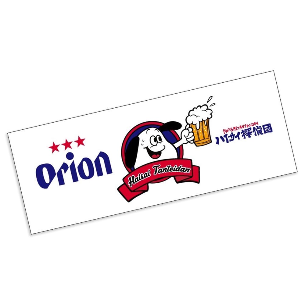 こちらの「チャッピー乾杯タオル」は、ハイサイ探偵団のキャラクター「チャッピー」がオリオンビールで乾杯を捧げるデザイン。ハイサイ探偵団×オリオンビールのコラボ感満載で、思わずビールで乾杯したくなるデザインです。