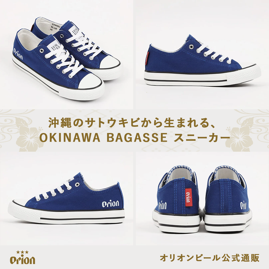 使いきれずに余ってしまっている沖縄の原料を有効活用し、オリオンオリジナルのスニーカーに仕上げたサステナブルなアイテム。ぜひこの機会に沖縄を身近に感じられる「OKINAWA BAGASSE スニーカー」を履いて、沖縄旅行やお出かけをお楽しみください。