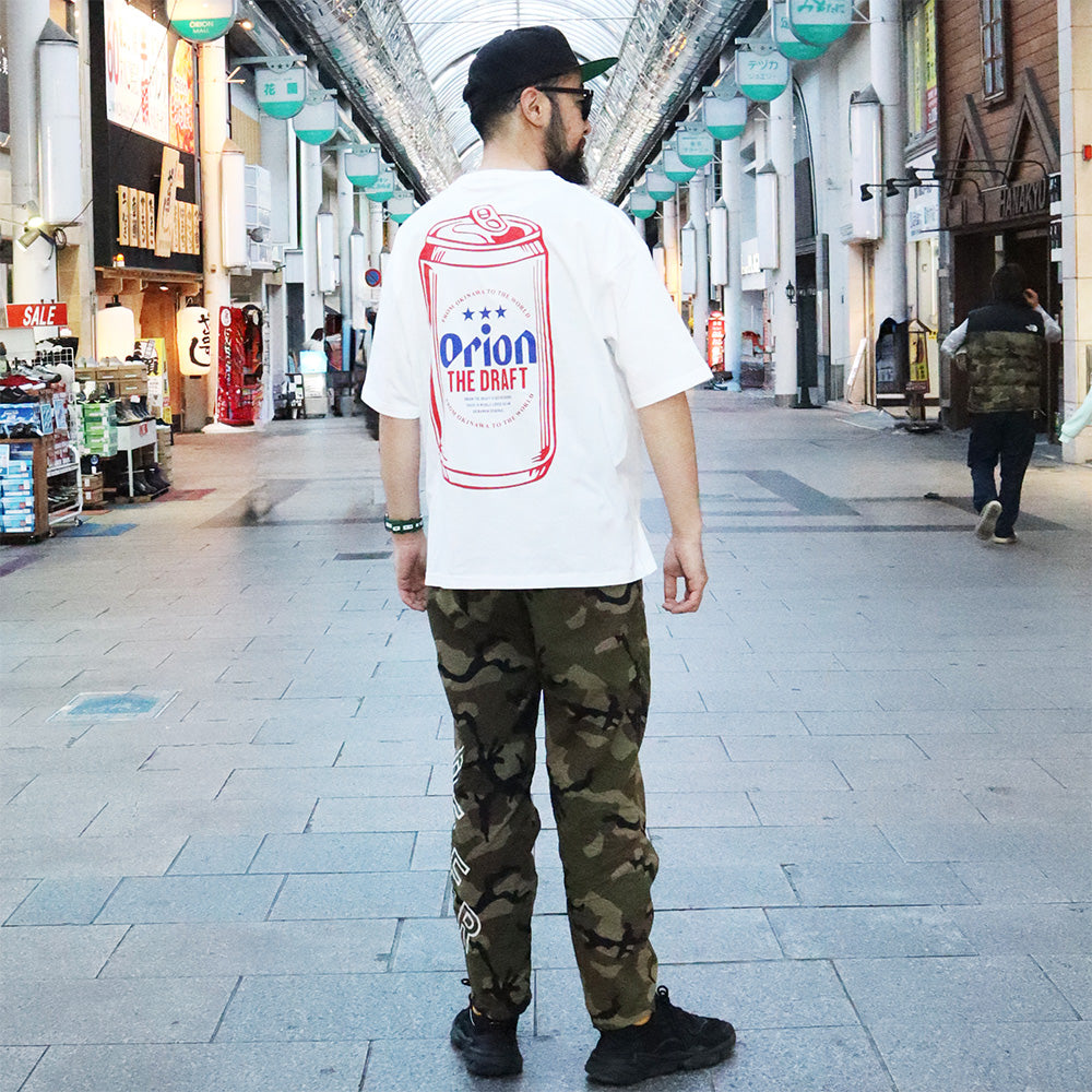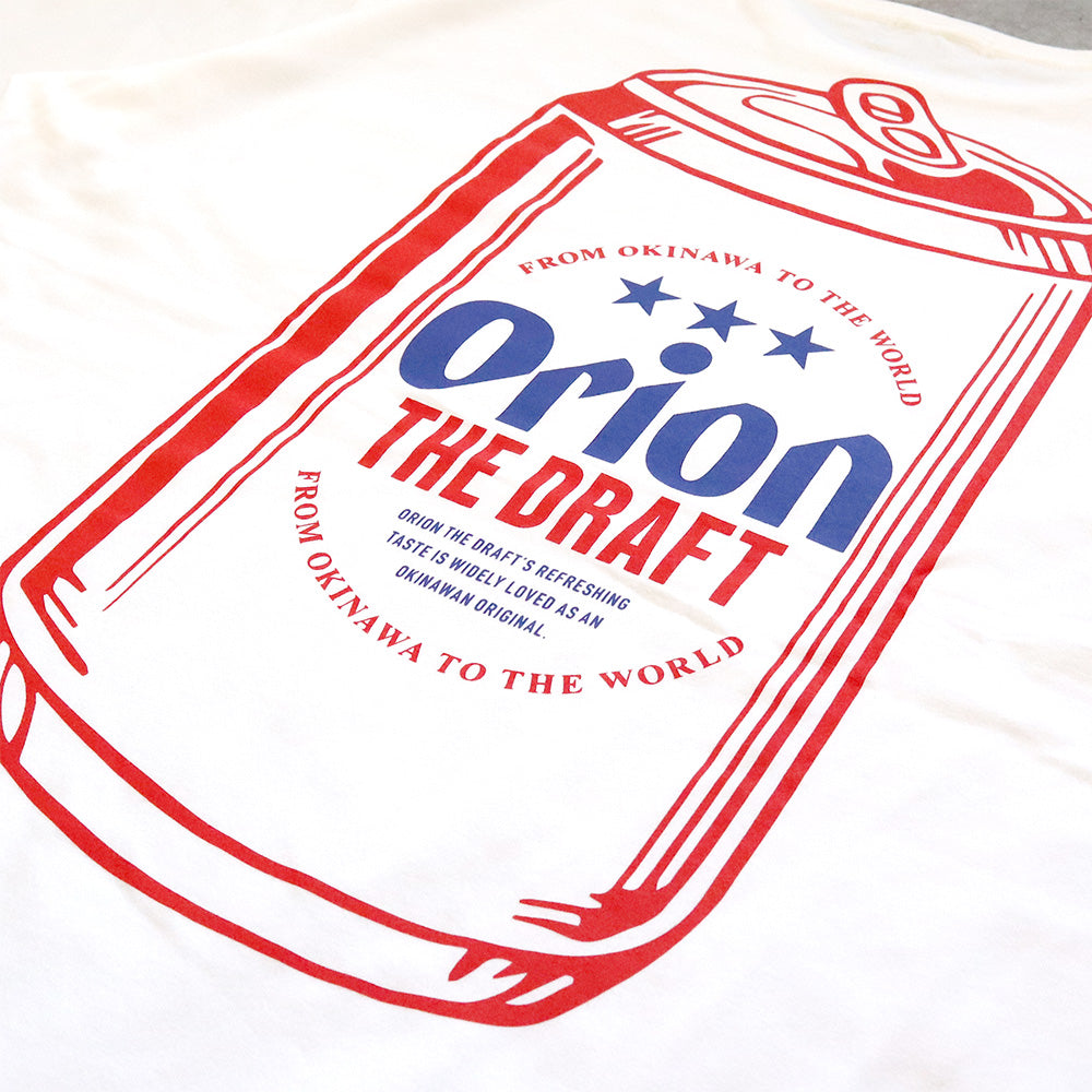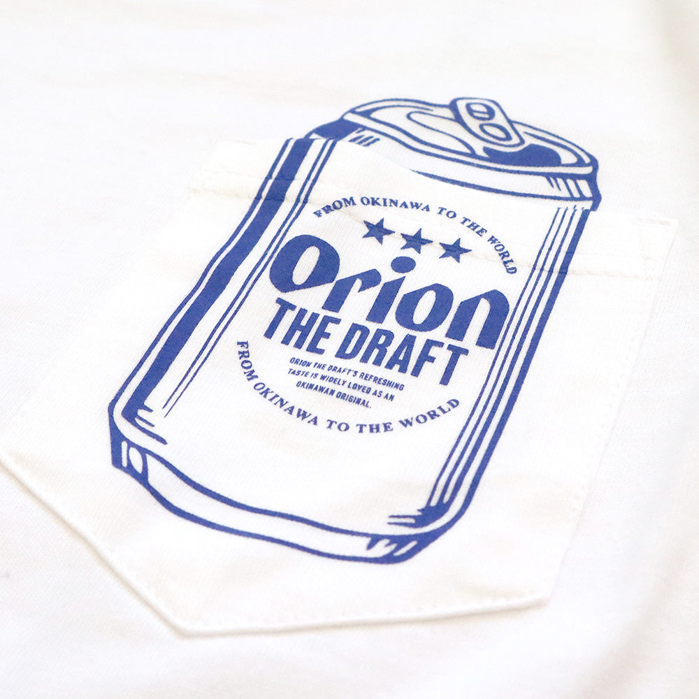 こちらのBEER缶ロゴポケットTシャツは、フロントの胸ポケットに350ml缶サイズのオリオンザ・ドラフト缶を配置し、バックにも大きなオリオンザ・ドラフト缶を配置したシンプルかつインパクトのあるデザインです。