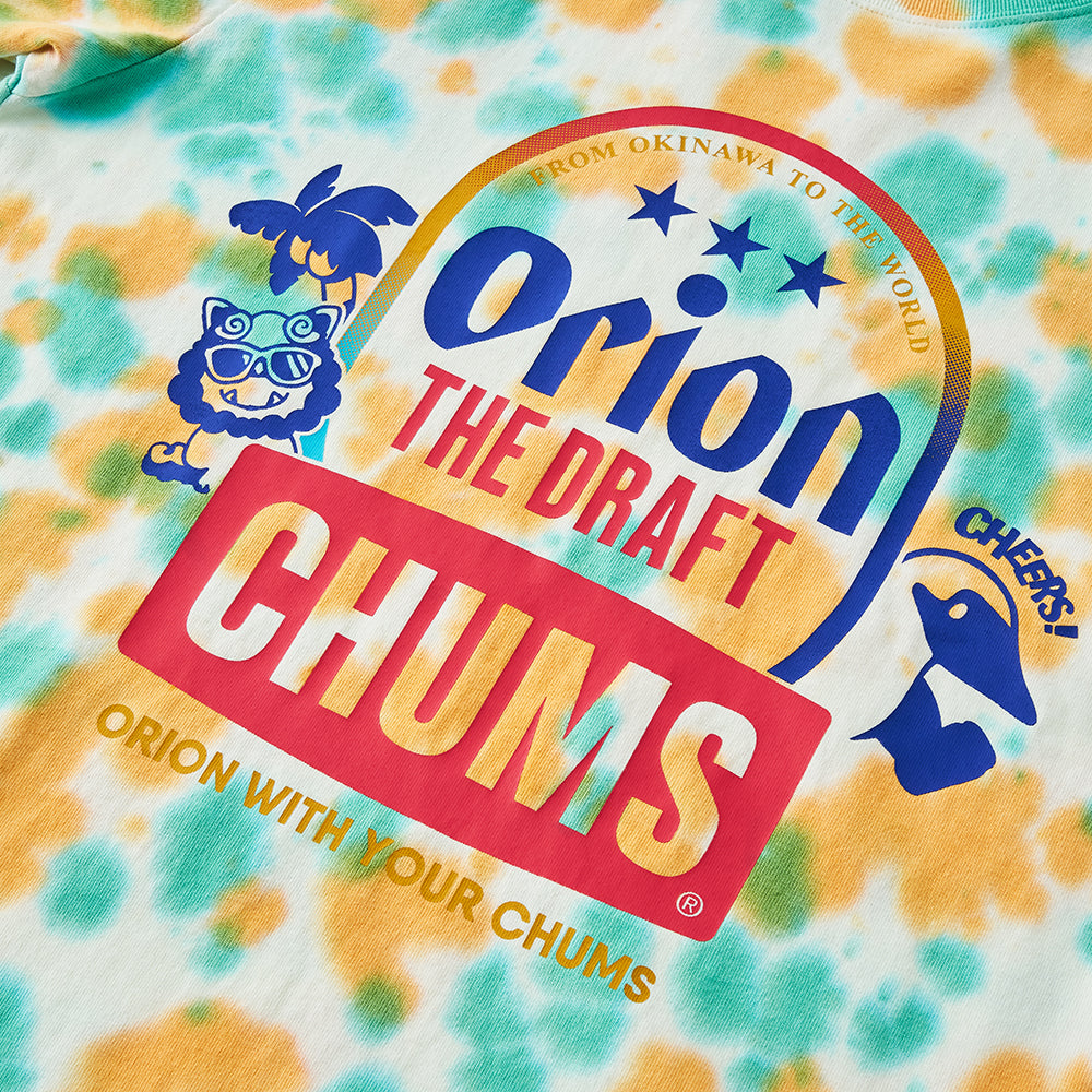 大人気のTシャツは、両ブランドのシンボルに加え、シーサーやジンベエザメなど沖縄要素を組み合わせたCHUMS×ORIONコラボならではのデザイン。2種類のデザイン×各6色のバリエーションをご用意しておりますので、お気に入りの1着を見つけてくださいね。