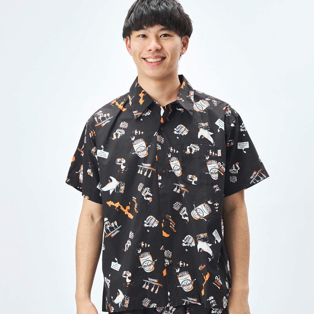 こちらの シャツは、守礼門やオリオンビール工場、シーサーやジンベエザメなど沖縄のシンボルと生き物達を描いた楽しさ溢れるデザイン。別売りのショーツとセットアップでの着用もおすすめなので是非チェックしてくださいね。