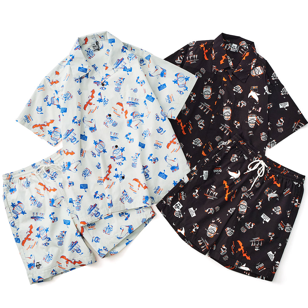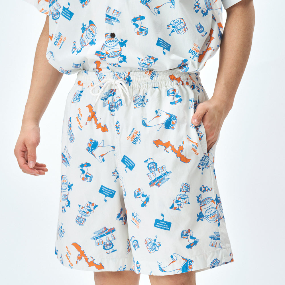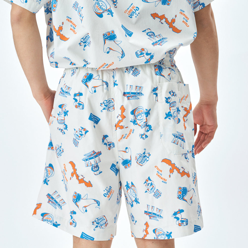 こちらの ショーツは、守礼門やオリオンビール工場、シーサーやジンベエザメなど沖縄のシンボルと生き物達を描いた楽しさ溢れるデザイン。別売りのシャツとセットアップでの着用もおすすめなので是非チェックしてくださいね。