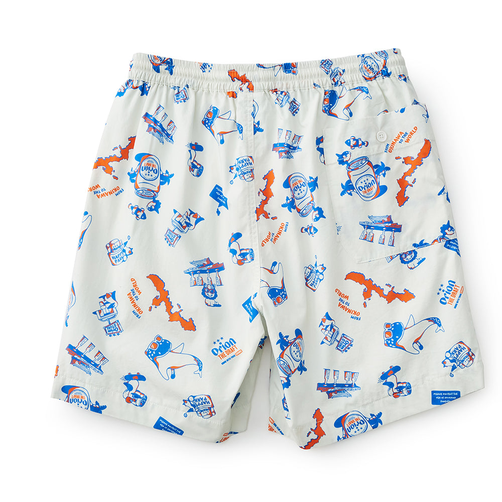 ◎両ブランドのシンボルと沖縄要素のイラストを散りばめた楽しさ溢れる総柄ショーツ!