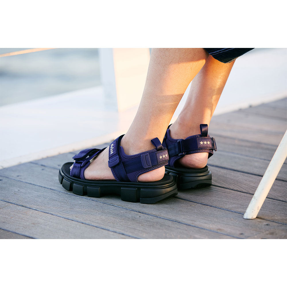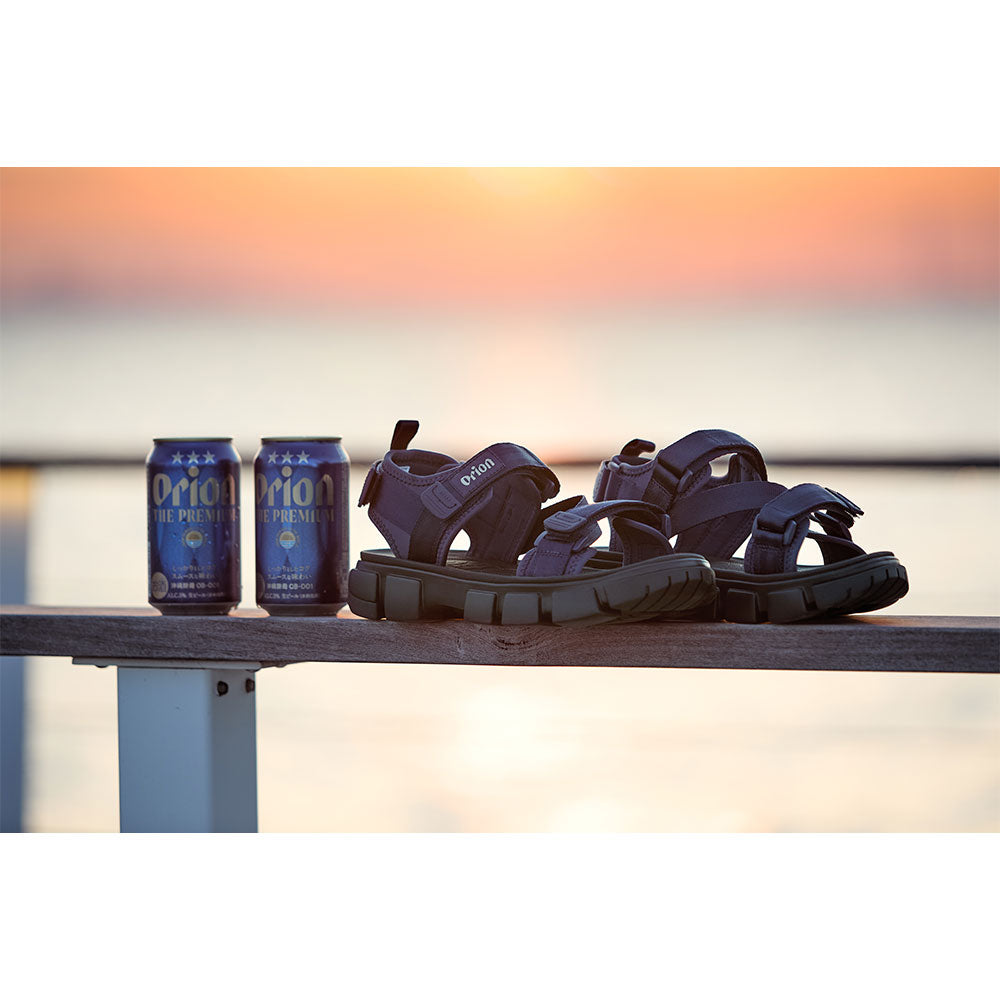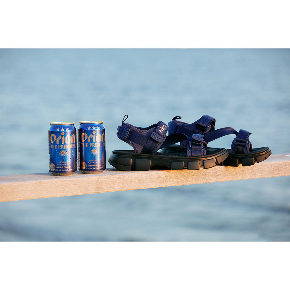 本アイテムは、ZAMPER SFならではの高いグリップ力と快適な履き心地をそのままに、インラインにはない深みのあるネイビーカラーを採用。ディテールとして「オリオンビール」のシンボリックな三ツ星をゴールドカラーでヒールのストラップに施し、甲部分に「オリオンビール」のロゴをプリントしたオリジナルデザインです。 通気性と機能性に優れたZAMPER SFは、ビーチ、キャンプ、フェス、そして街中でもその存在感を発揮。まさに、この夏を自由に楽しむための一足です。