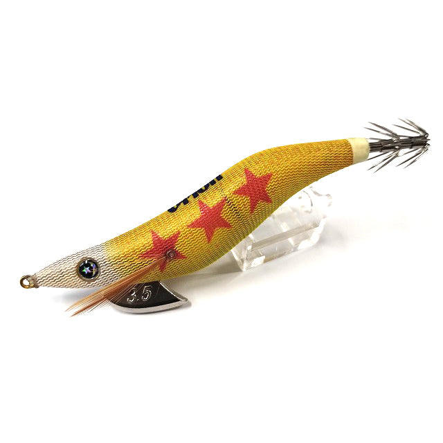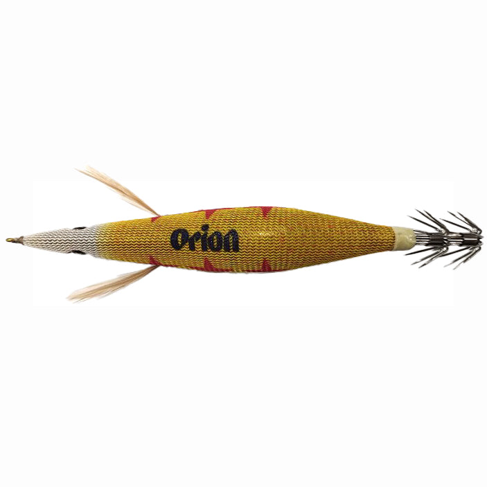 グラスに注がれたビールの”ゴールドの液色”と”白くきめ細やかな泡”をイメージしたボディカラーを採用。側面には「オリオンビール」の象徴ともいえる三ツ星ロゴを大胆に配置し、背中部分にはスタイリッシュな「orion」ロゴをあしらいました。夜間や深場でもしっかりアピールするケイムラ(紫外線発光)仕様で、デザインだけでなく実釣性能も申し分なし。釣って楽しい、持って嬉しい、限定エギをぜひ手に入れてください。