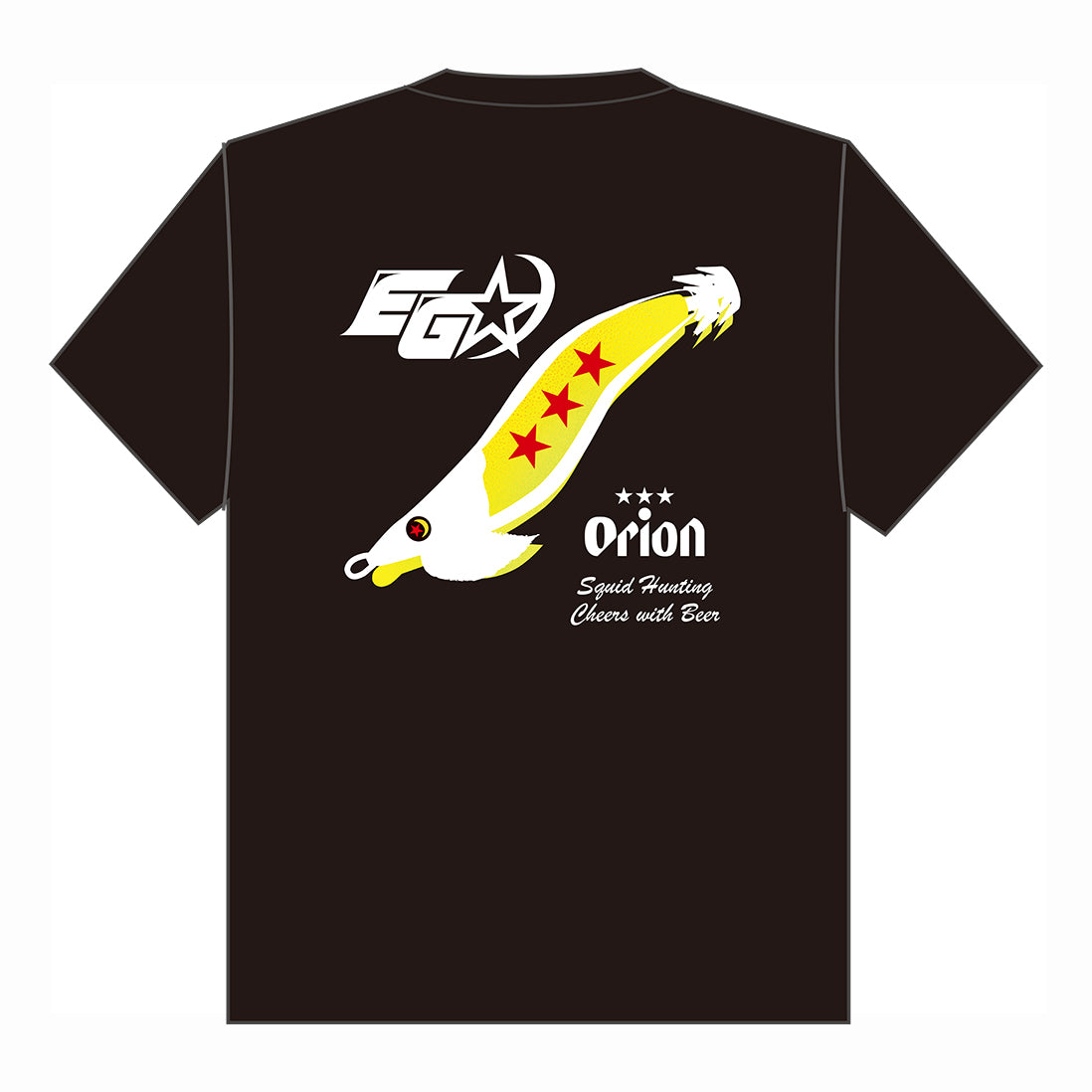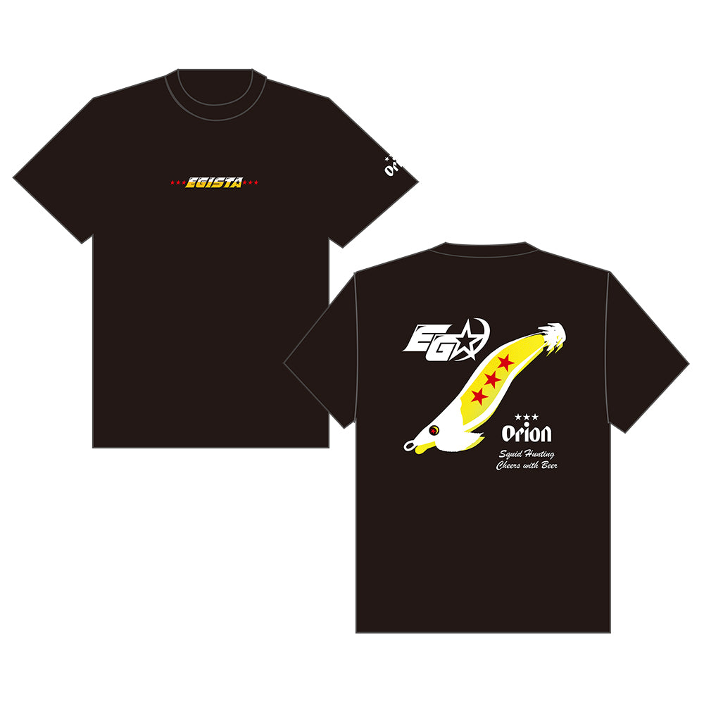 バックプリントに注目アイテムの「コラボイカエギ」を大きくプリントしたデザインに仕上げました。フロントには、エギスタのロゴとオリオンビールの三ツ星ロゴが共鳴したコラボ感溢れるデザインに。海でも街でもカジュアルに着れて、釣り人からの注目間違いなしの1着です。