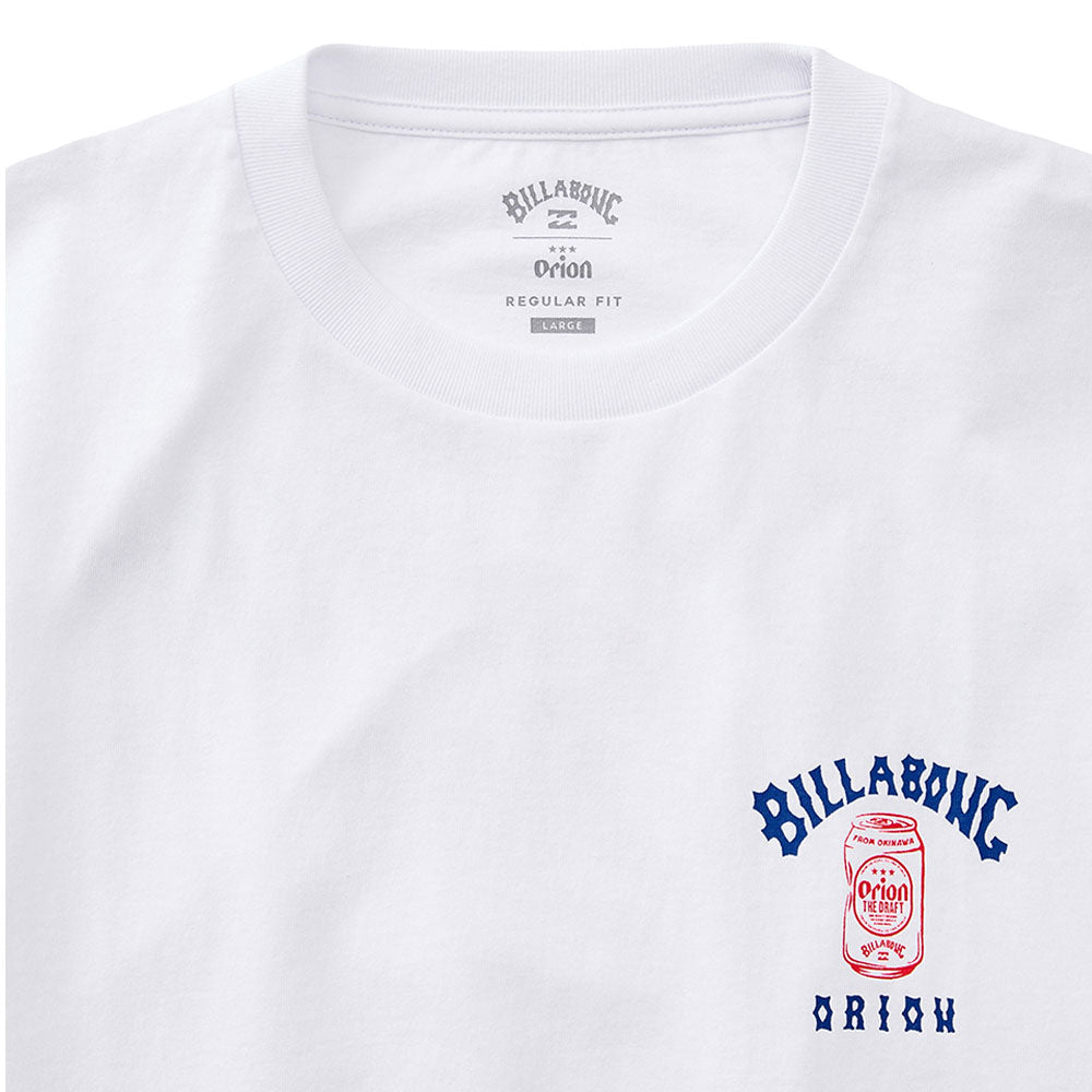 左胸にBILLABONG のアーチロゴと、ORION BEER の缶のグラフィックをオン。バックにも大胆にロゴをあしらったデザインに。