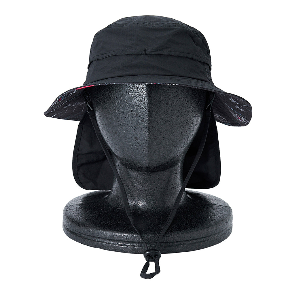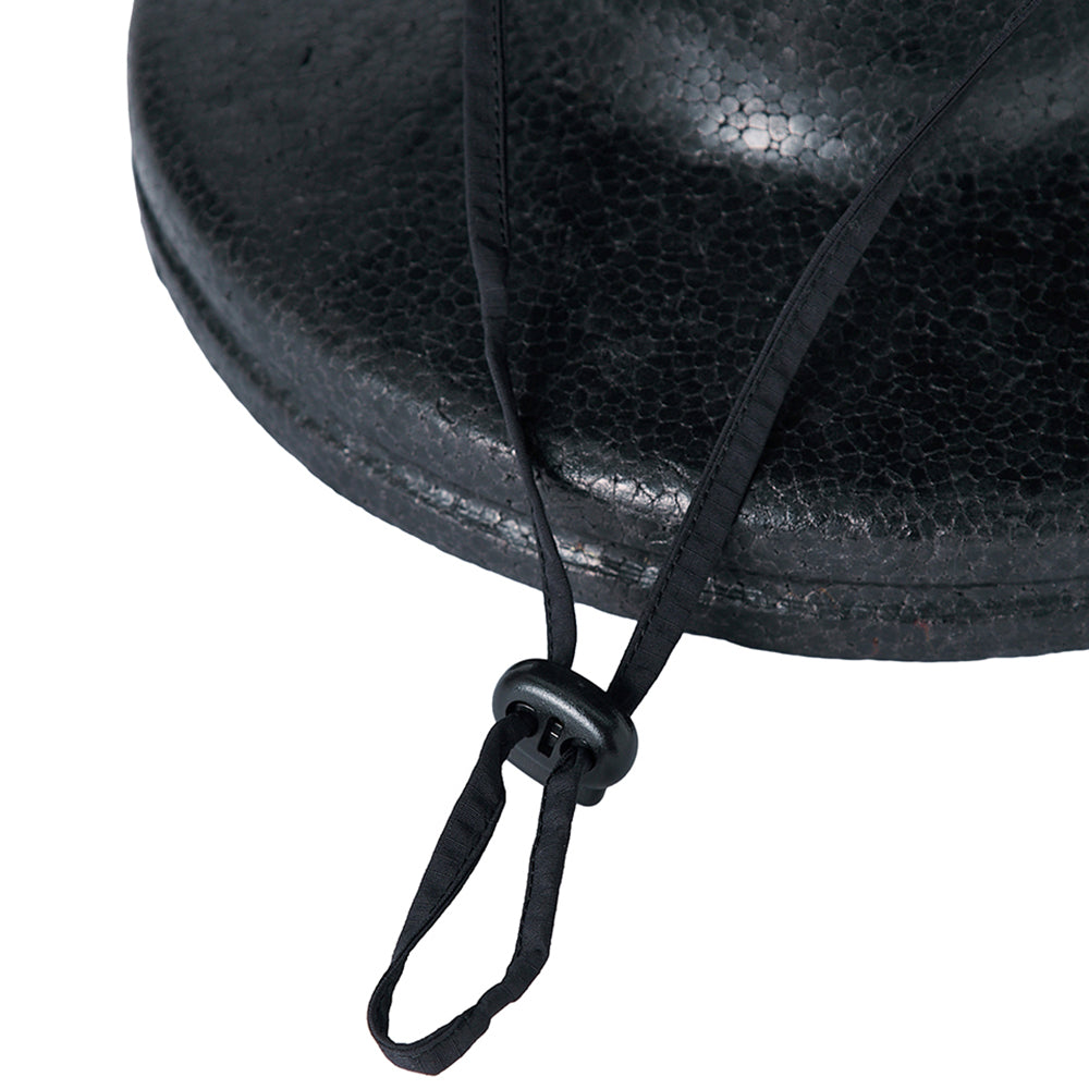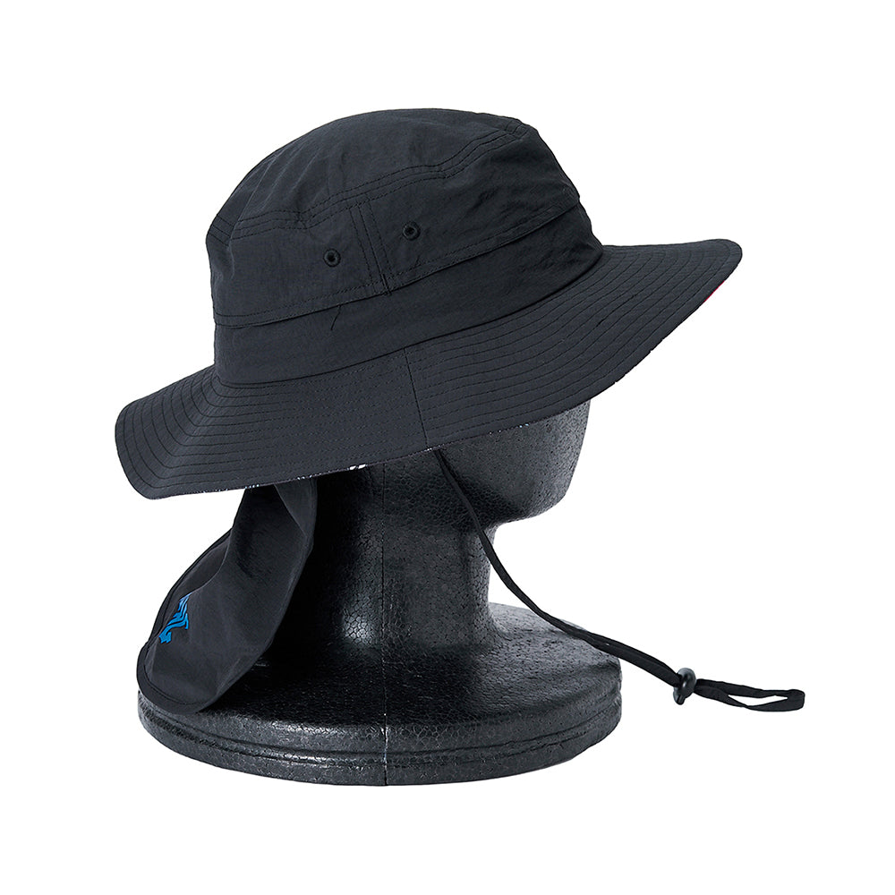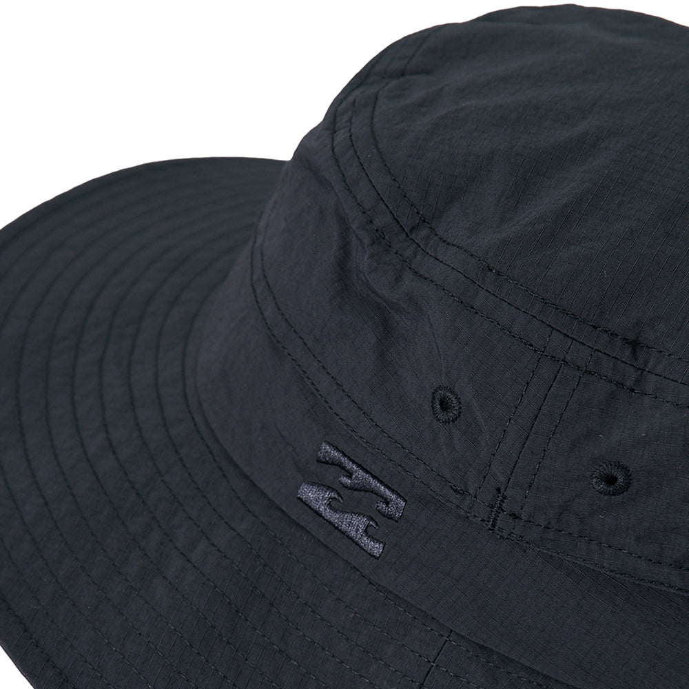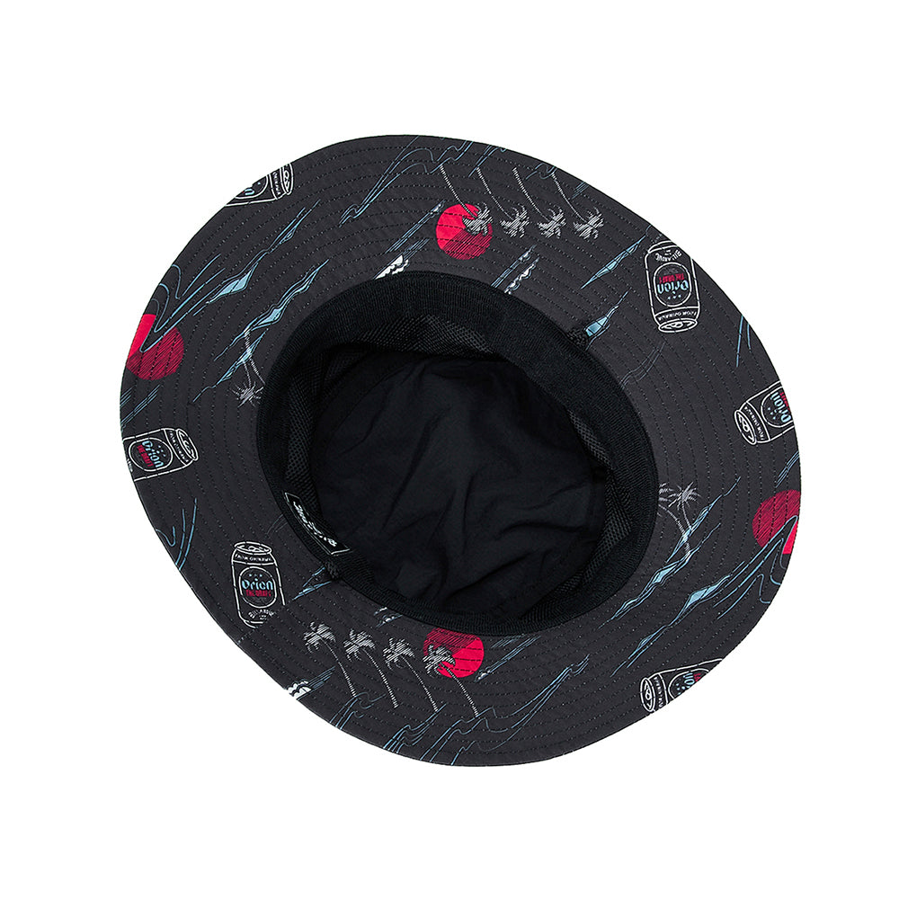 UV プロテクション(UPF50+)を備えたハット。メイン素材にポリエステルを使用し、首の日焼けを防止するサンシェードには、ORIONBEER とBILLABONG のロゴをプリントしました。便利なループストラップ付きで、水陸どちらでも使用可能です。サイドにワンポイントと、たれ部分にコラボロゴを配置。