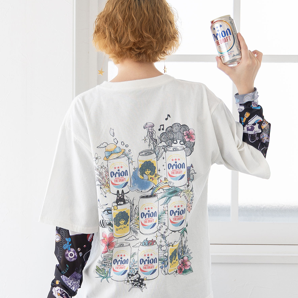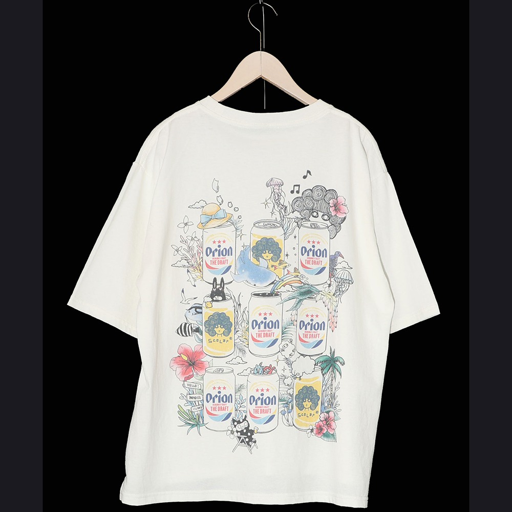 orion×ScoLar ビアーパラダイス柄Tシャツ(オフホワイト)