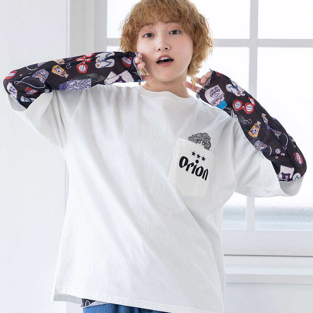 前身頃は胸ポケットからちょこんと顔を覗かせるスカラーちゃんがキュートなアクセントに♪ 胸ポケットにはさりげなく「ORION」のロゴも添えて、シンプルながらも印象的なデザインに仕上がっています。