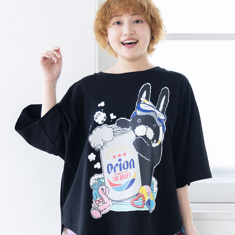ORION×ScoLar ラビルのビーチパーティ柄Tシャツ(ブラック)