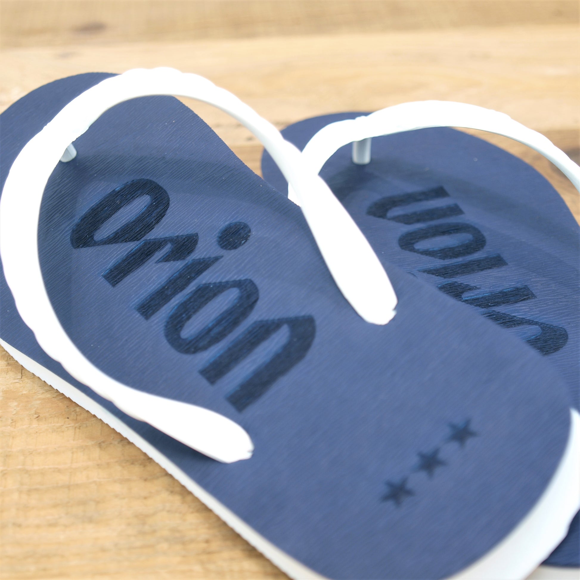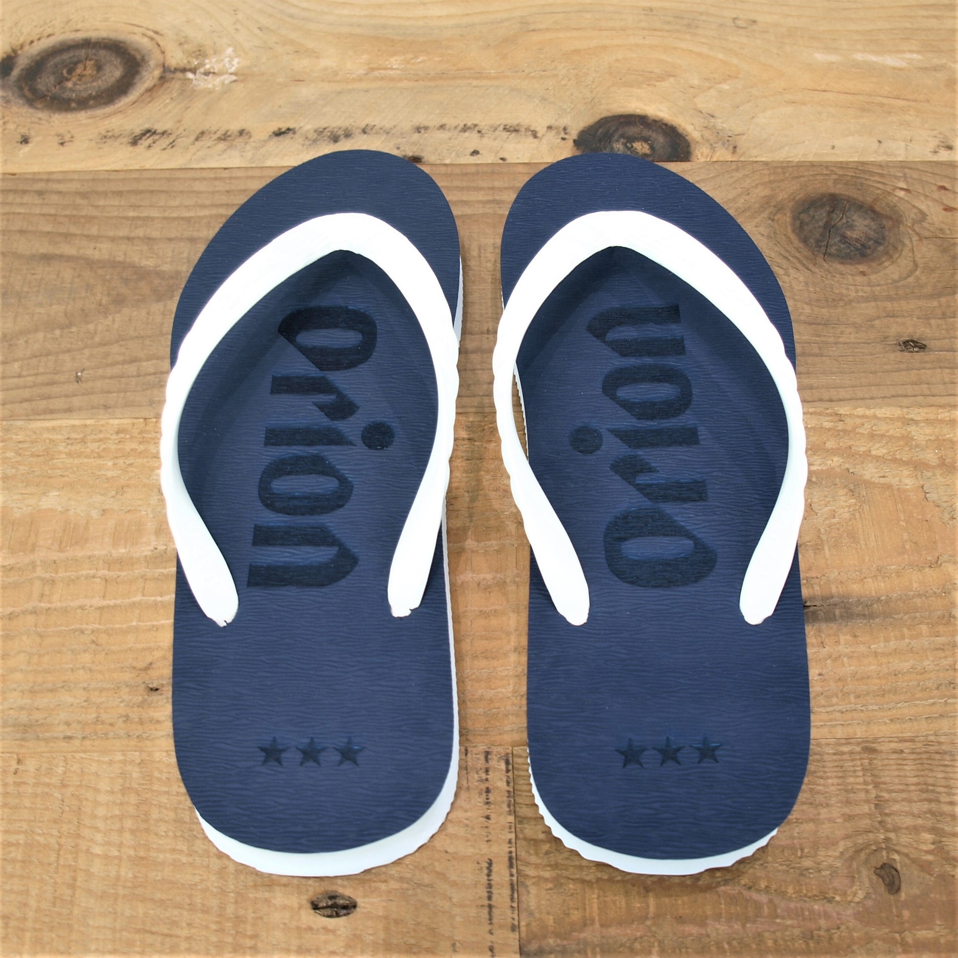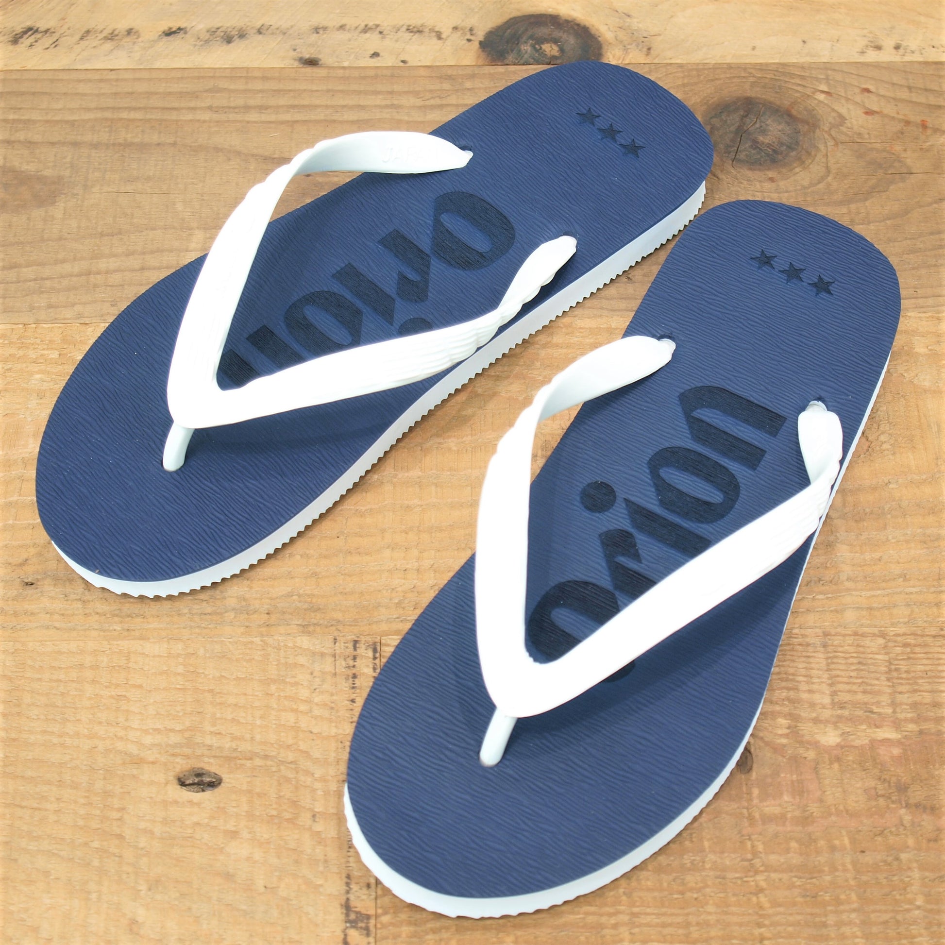 オリオン 島ぞうりは2つのデザイン・カラーをご用意。ネイビー(本商品)、ホワイト、シティグリーン、ワインよりお好みのデザインをお選びください。ソール部分にオリオンのロゴマークが彫刻されています。