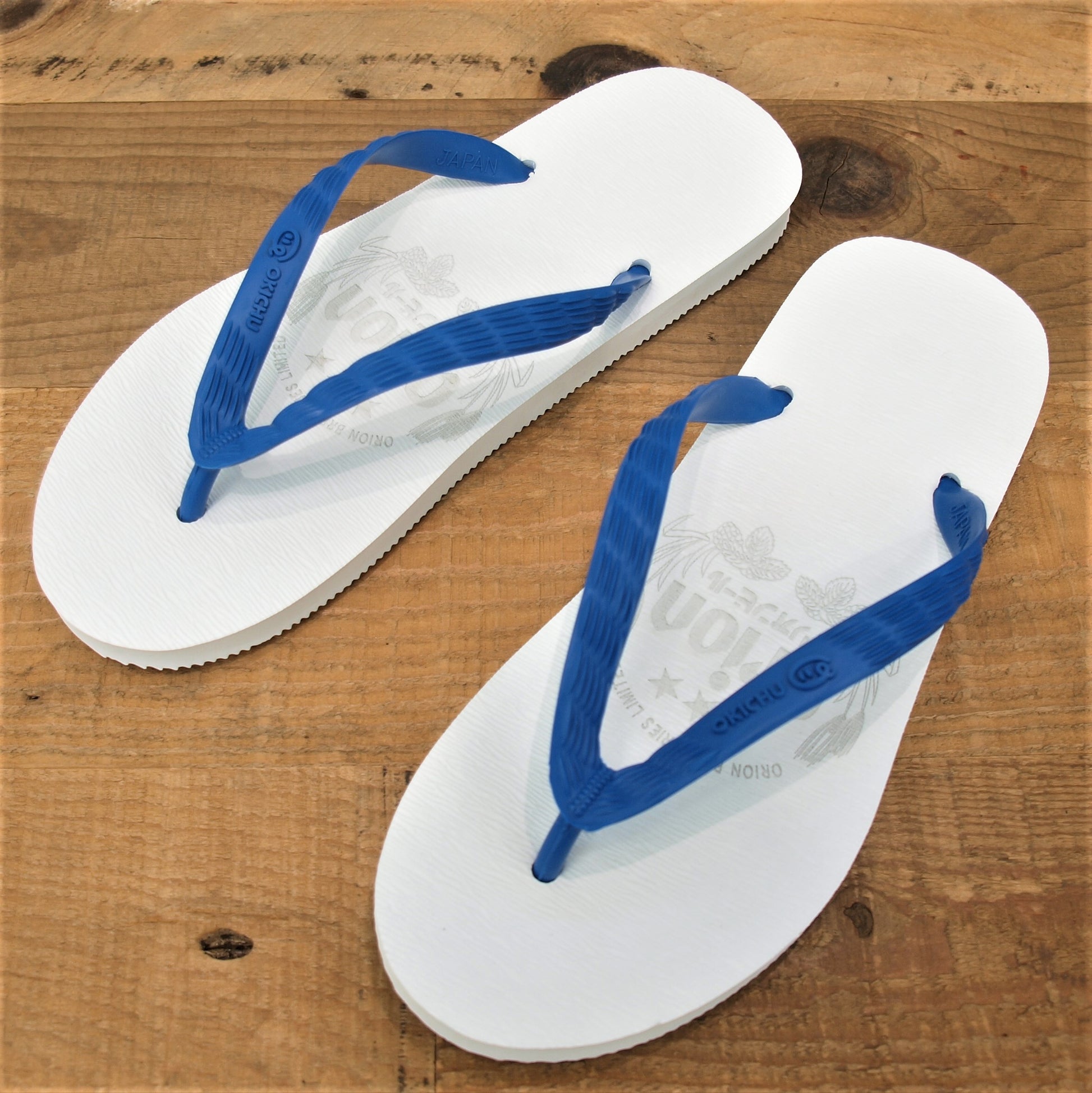 オリオン 島ぞうりは2つのデザイン・カラーをご用意。ホワイト(本商品)、ネイビー、シティグリーン、ワインよりお好みのデザインをお選びください。ソール部分にオリオンのロゴマークが彫刻されています。
