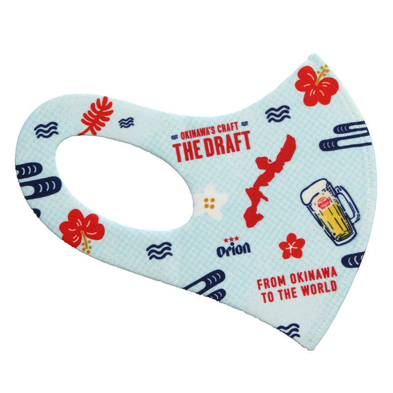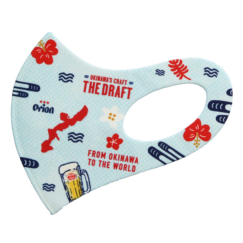 オリオンロゴやザ・ドラフト瓶ビールのイラストなどをあしらった、沖縄らしさ溢れるデザインのオリジナルマスクです。日本国内の工場で生産・プリントされた高品質の立体形状で、毎日の気分を明るくするファッションアイテムとしてどうぞ。プレゼントにもおススメです。