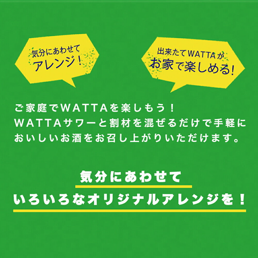 WATTAサワーと割材を混ぜるだけで手軽においしいお酒をお召し上がりいただけます。気分にあわせていろいろなオリジナルアレンジを!
