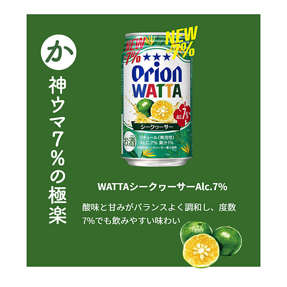 人気のオリオンWATTAシークヮーサーから、アルコール7%が登場!