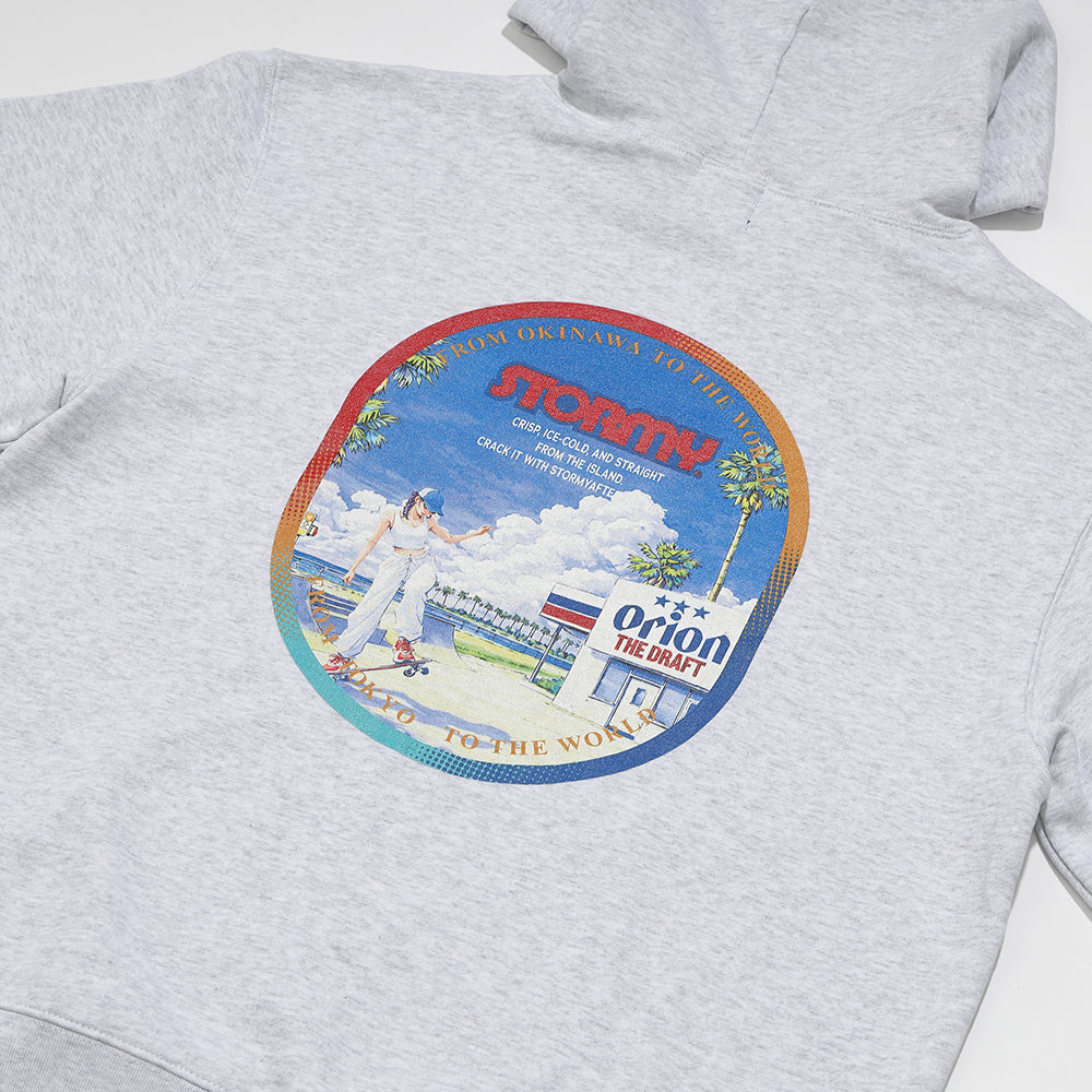 「STORMY」は1977年より創業し、現在は東京都渋谷区などに店舗を構える老舗のスケートボードショップです。今回のコレボレーションでは、STORMYのストリートカルチャーとオリオンビールの南国らしい自由なスピリットを融合させ、ここでしか手に入らないスペシャルなアパレルアイテムを展開。両ブランドのロゴや、沖縄の自然とスケートボードのアイコンをイメージしたグラフィックを配し、ファッションとカルチャーの垣根を越える新しいアイテムが誕生しました。