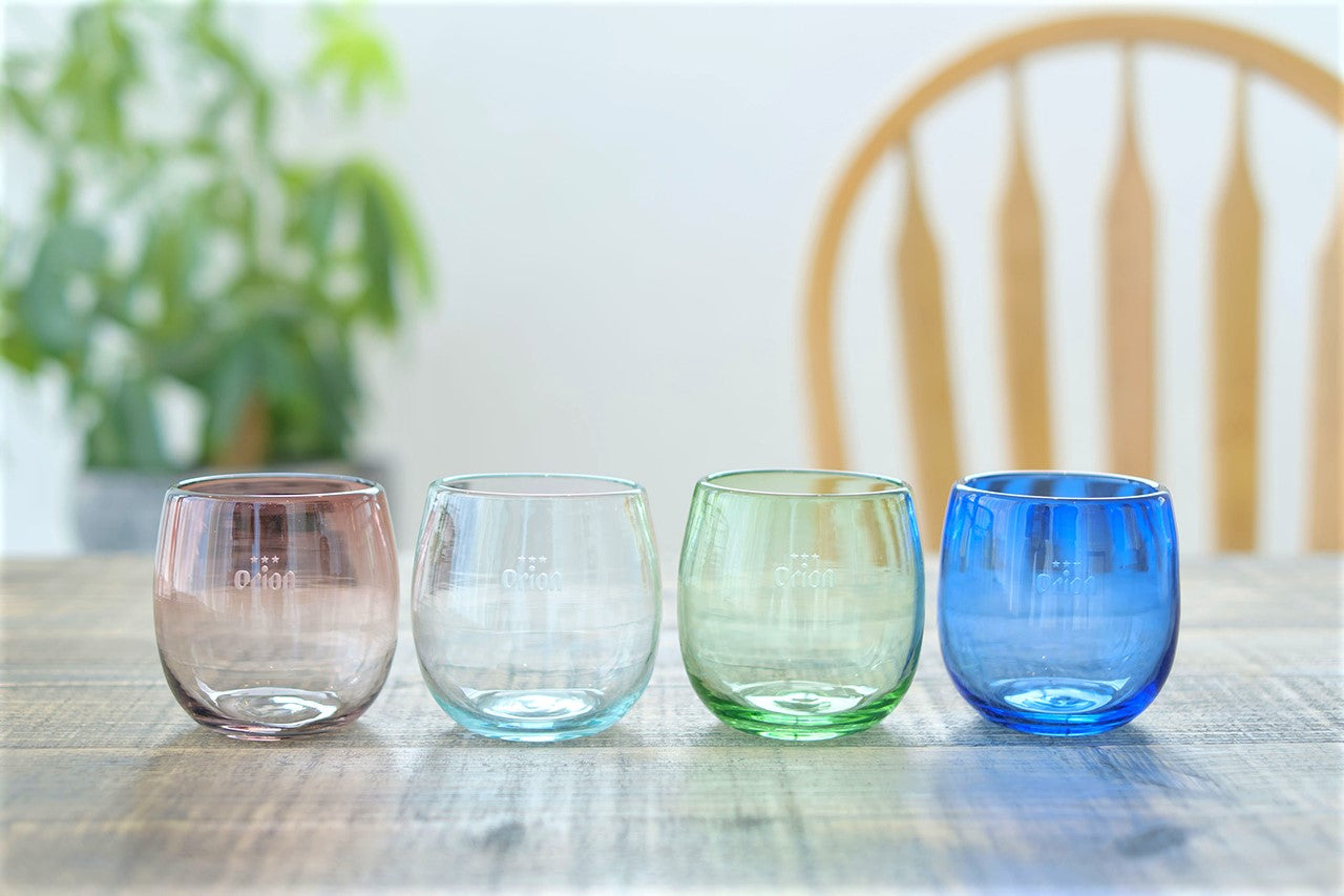 創業約70年になる琉球ガラスの老舗工房「奥原硝子製造所」が作るオリオンビール公式通販限定の琉球ガラスです。今回は、丸み帯びた形状が特徴の「タルカップ」をご用意しました。琉球ガラスらしい涼やかさを楽しめる、4種のカラーバリエーションをご用意。オリオンビールはもちろん泡盛など様々なお酒を美味しくかつお洒落に楽しめるアイテムです。