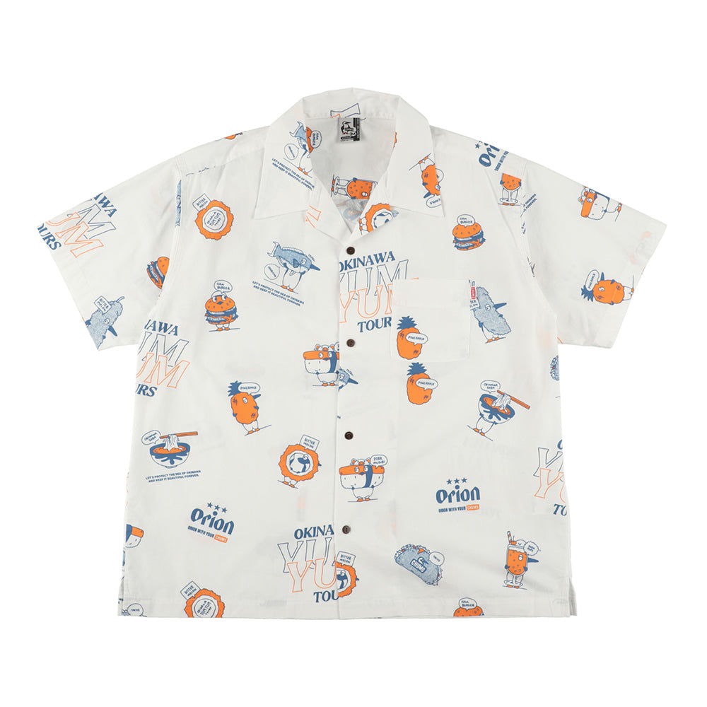 こちらのYUM YUM TOURS 総柄シャツは、ブービーバードが沖縄そばやタコスなど様々な沖縄ソウルフードを楽しむキュートなデザインに仕上げました。