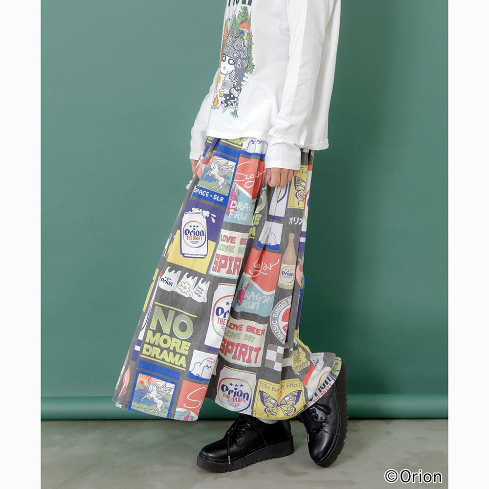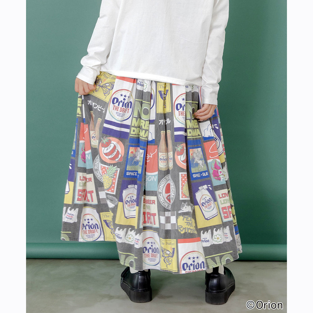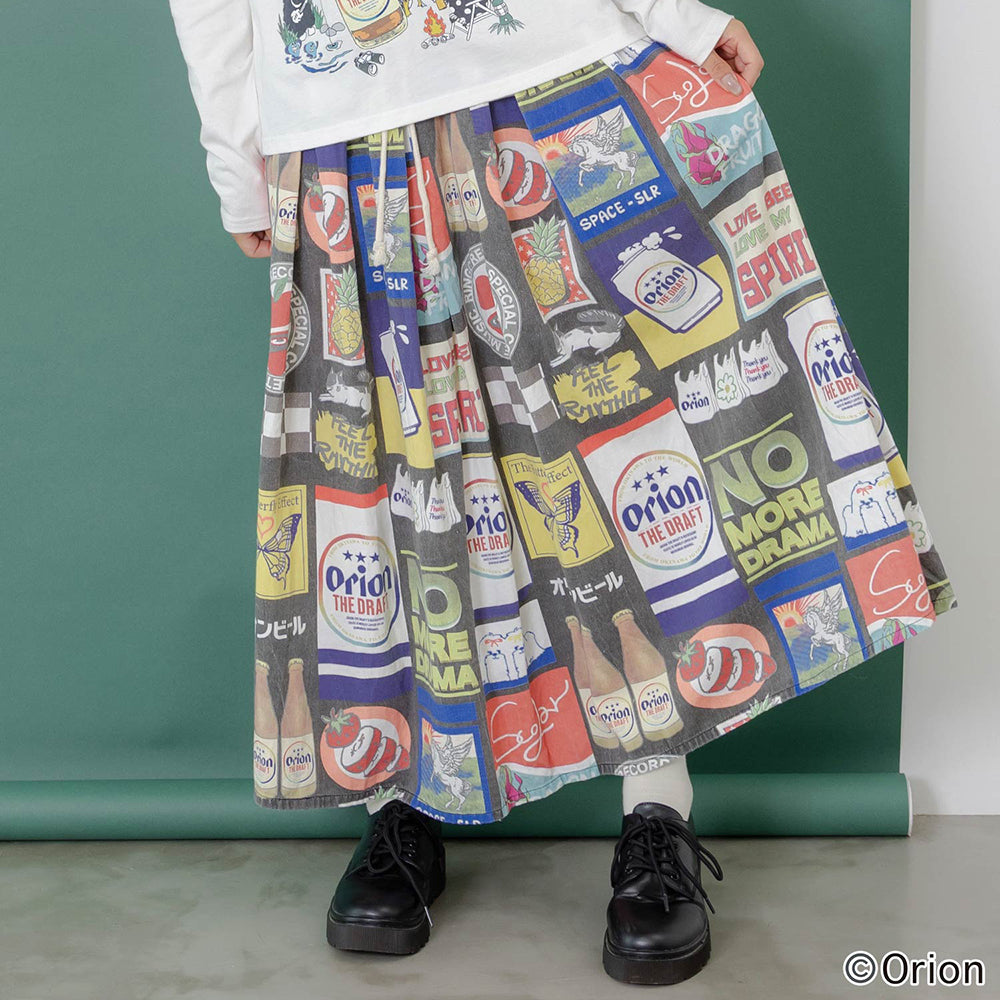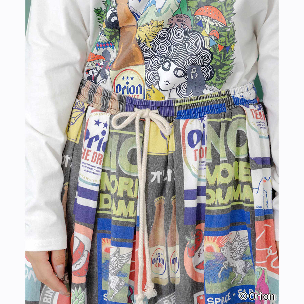オリオンビールやスカラーらしいポップなモチーフをコラージュした、アートなカラフルスカートが登場!