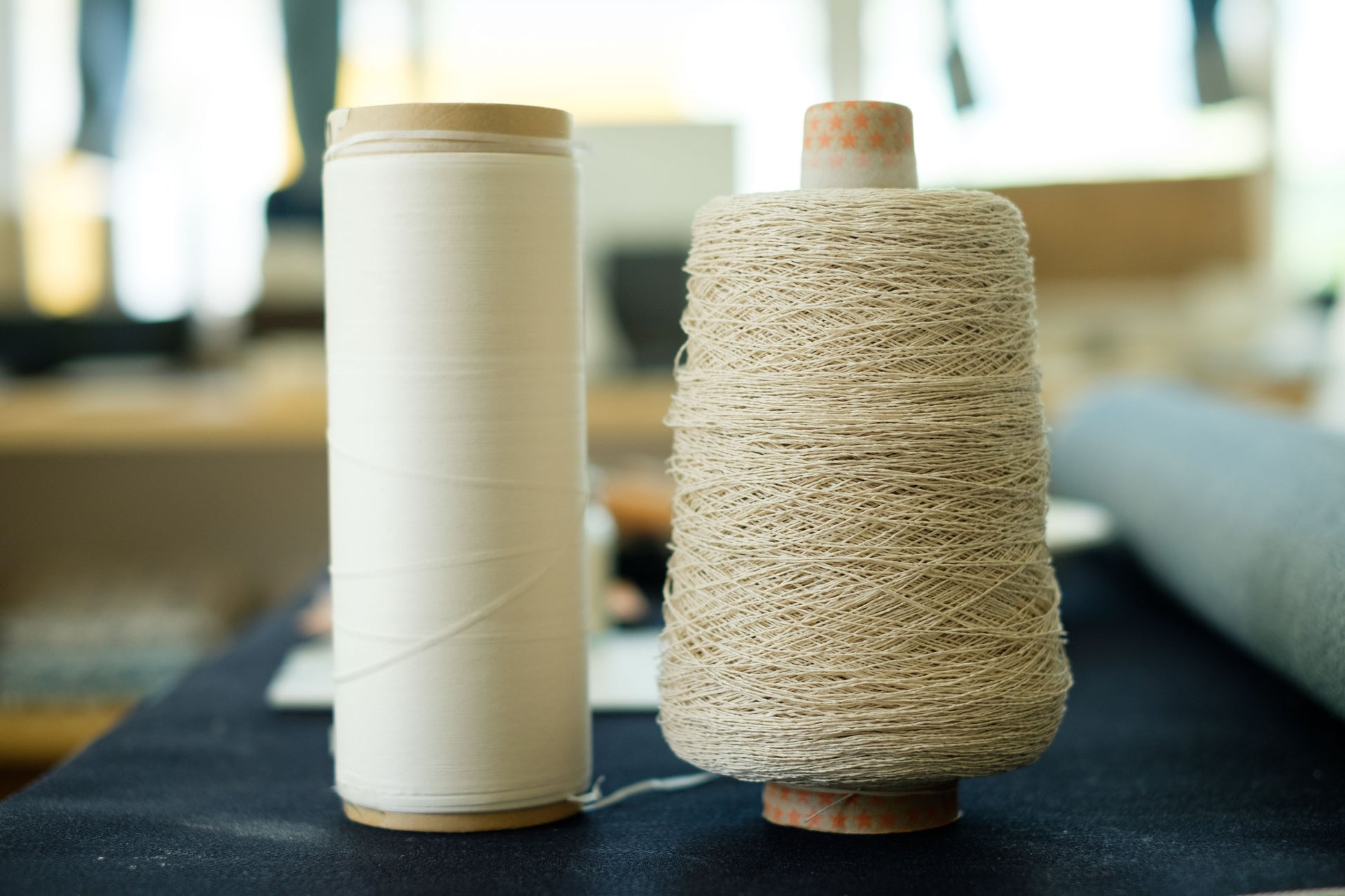 和紙をスリット加工し、より合わせることで和紙糸ができあがります。綿と比較すると軽い仕上がりで、高い吸水性と速乾性を持ち合わせています。